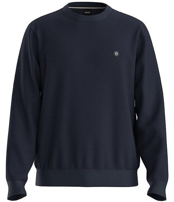 From BOSS, this sweatshirt features: Solid tone Crew Neck Long Sleeves Ribbed cuffs Pullover construction 86% cotton, 14% polyester Machine wash cold/dry flat Imported.