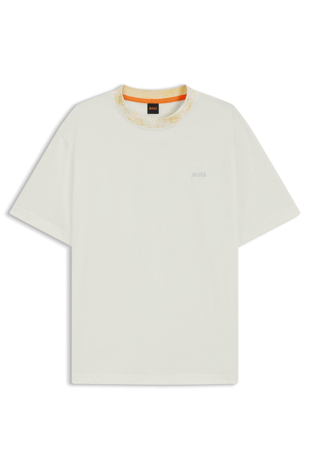 BOSS - Cotton-jersey T-shirt with patterned collar - White
