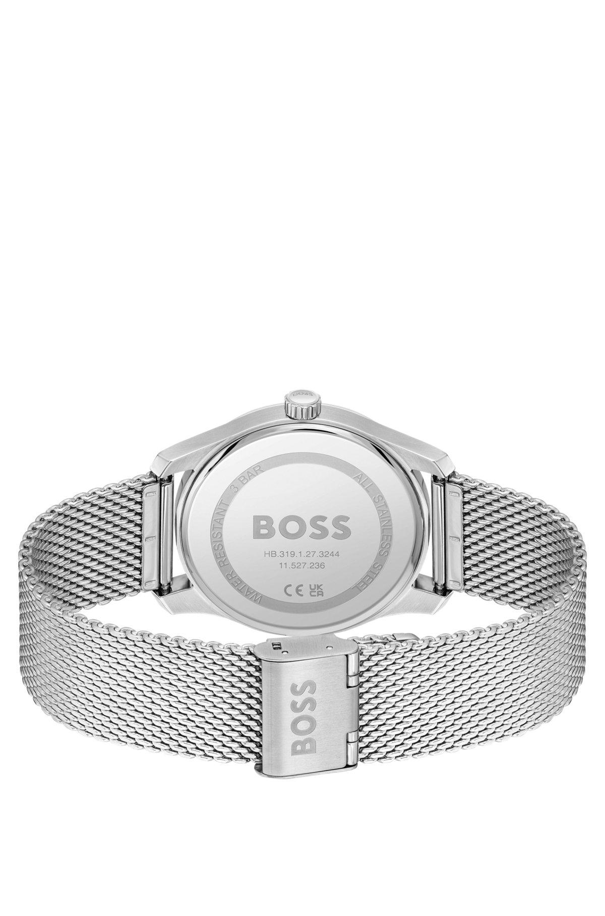 BOSS - Mesh-bracelet watch with blue patterned dial