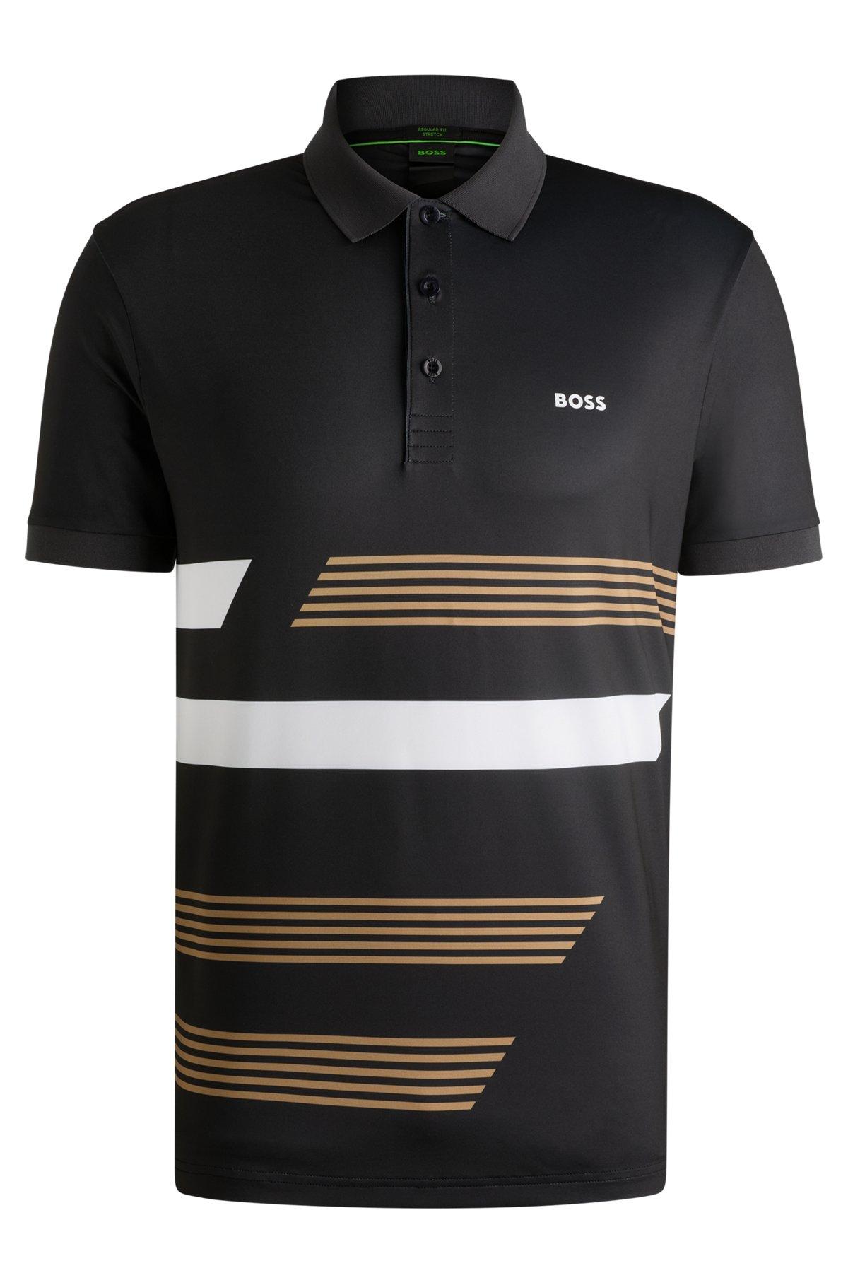 BOSS - Paddy stretch-jersey polo shirt with stripe print - Black