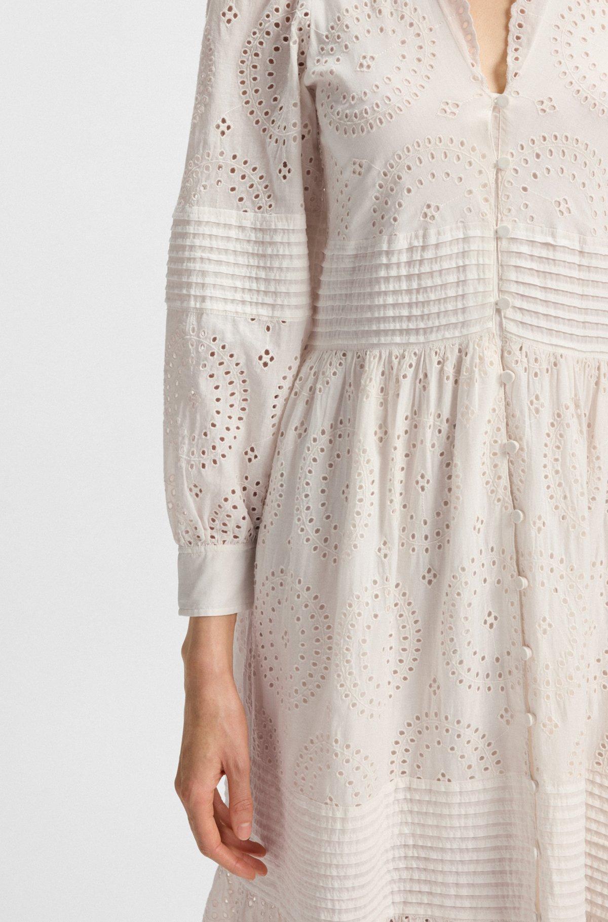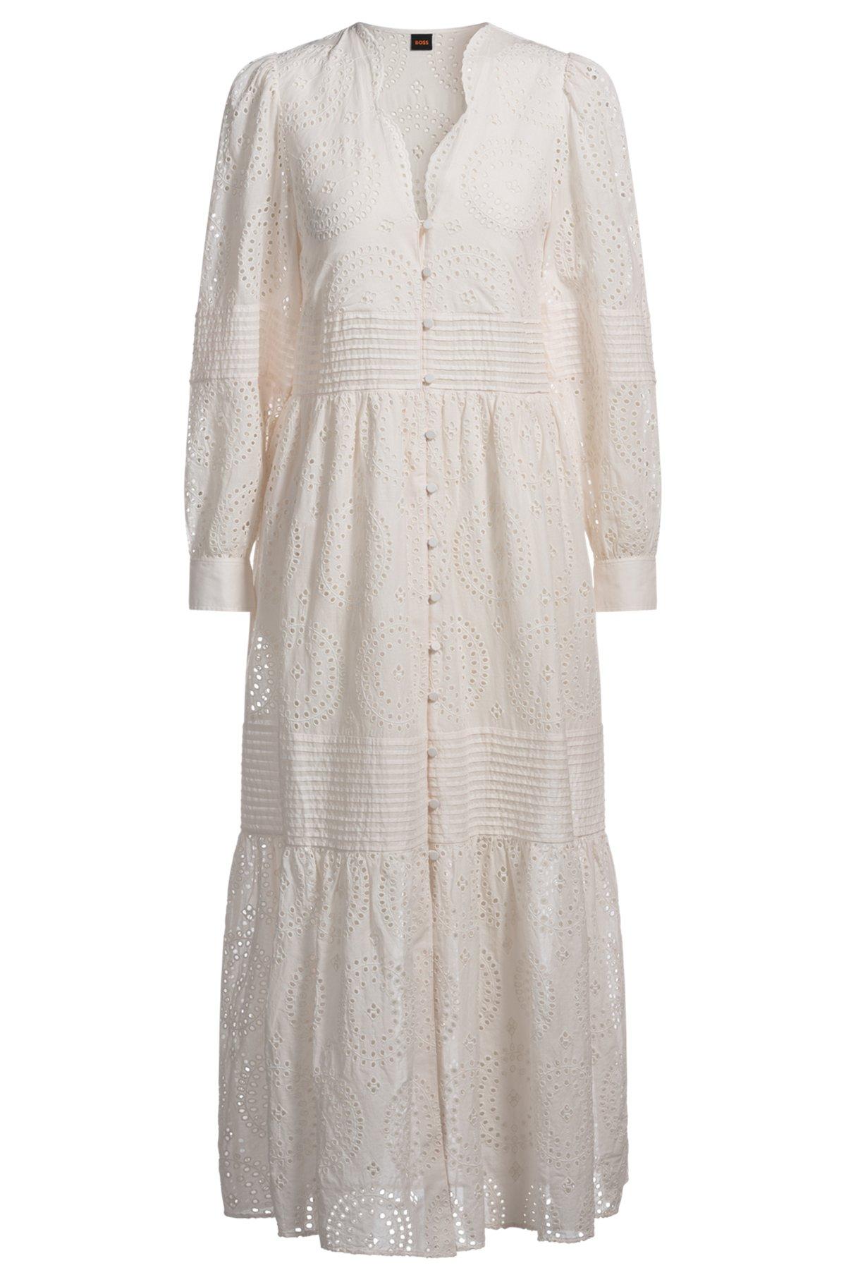 Pleat-detail dress in cotton broderie - White Day Dresses from BOSS for Women for in the official HUGO BOSS Online Store free shipping