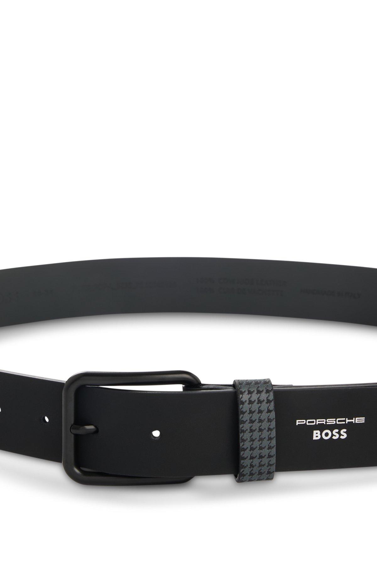 Porsche x BOSS belt in Italian leather with patterned keeper - Black Casual Belts from BOSS for Men for in the official HUGO BOSS Online Store free shipping
