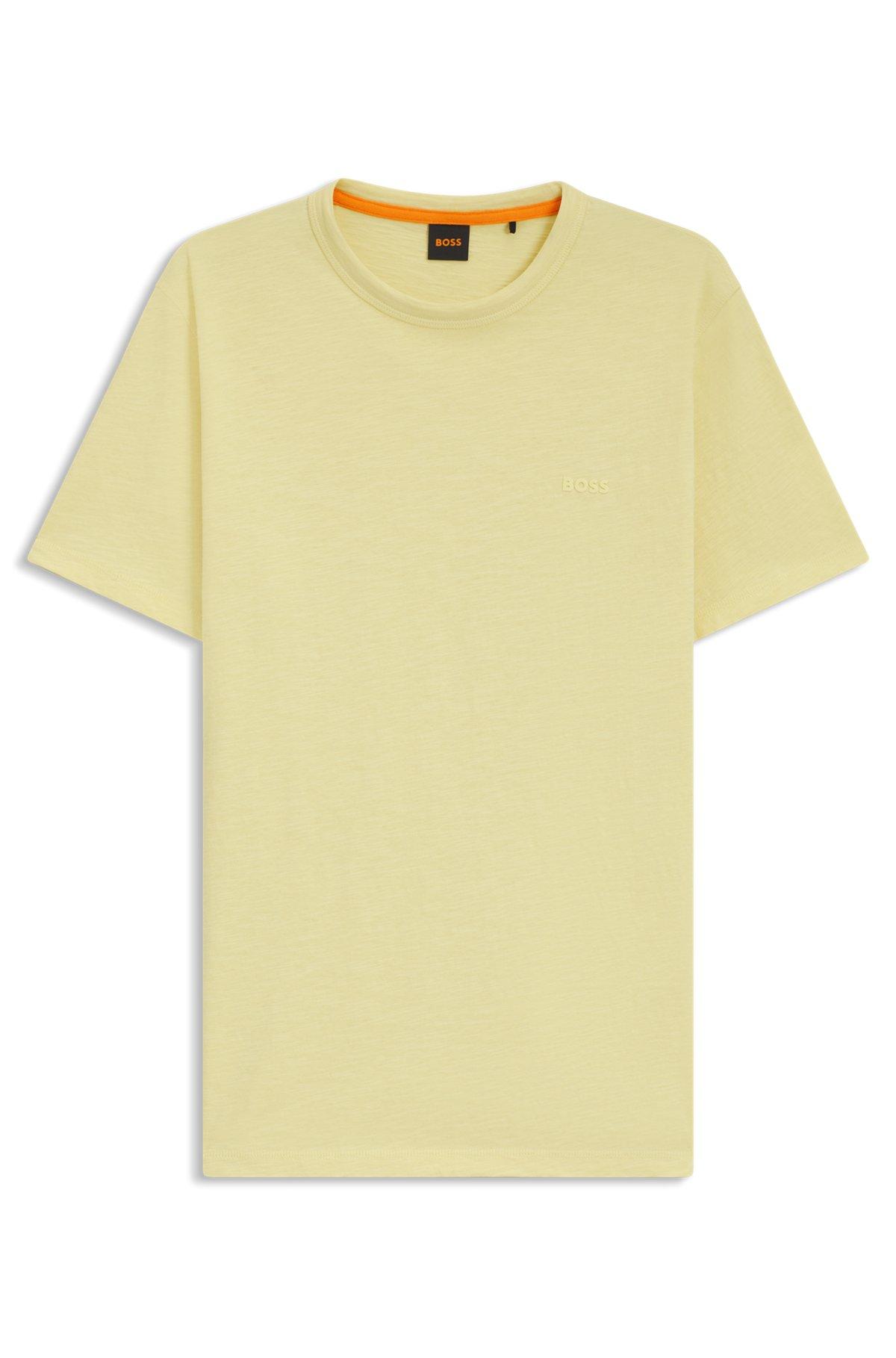 BOSS - Regular-fit T-shirt in cotton with mouline logo - Light Yellow
