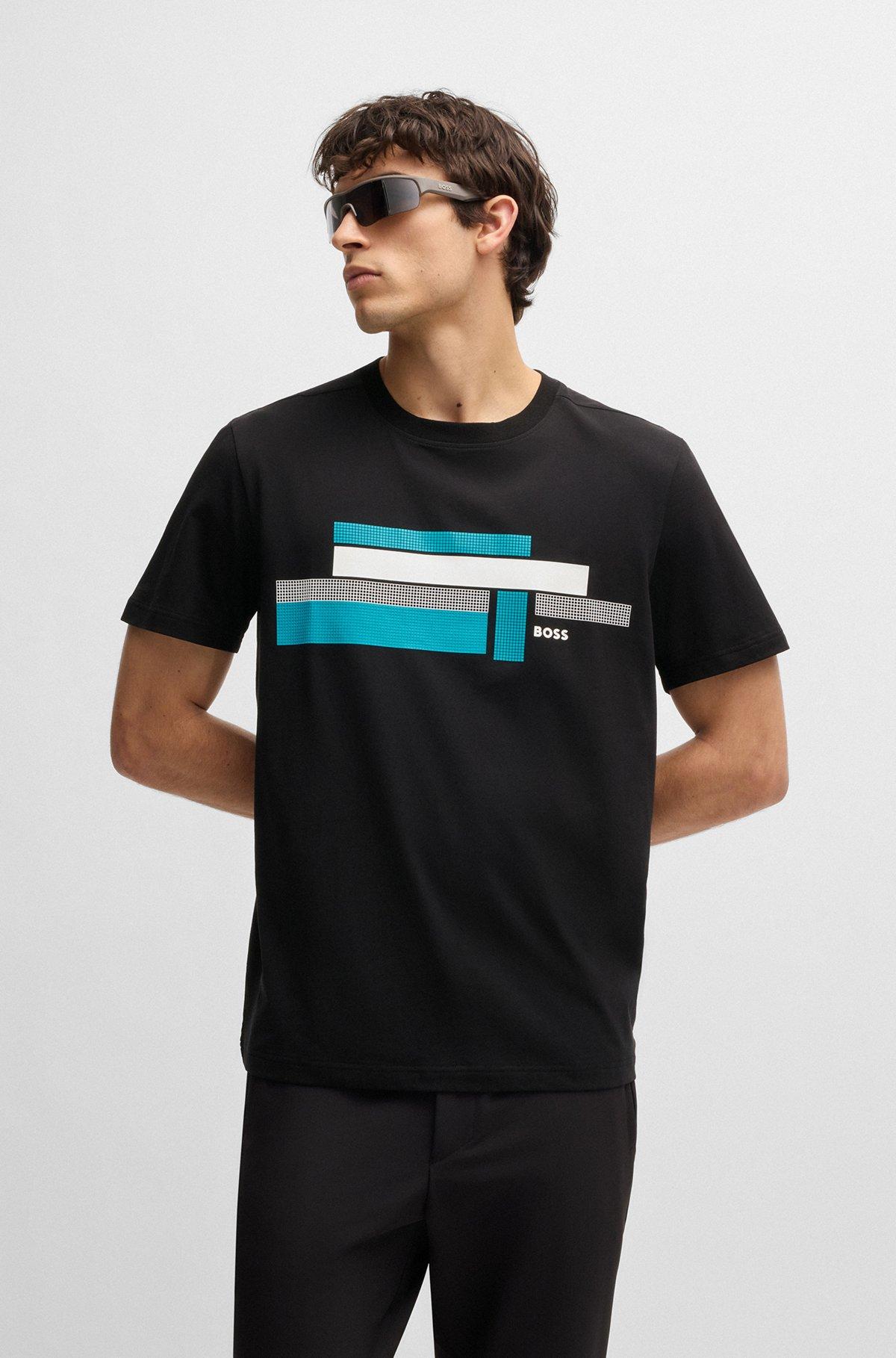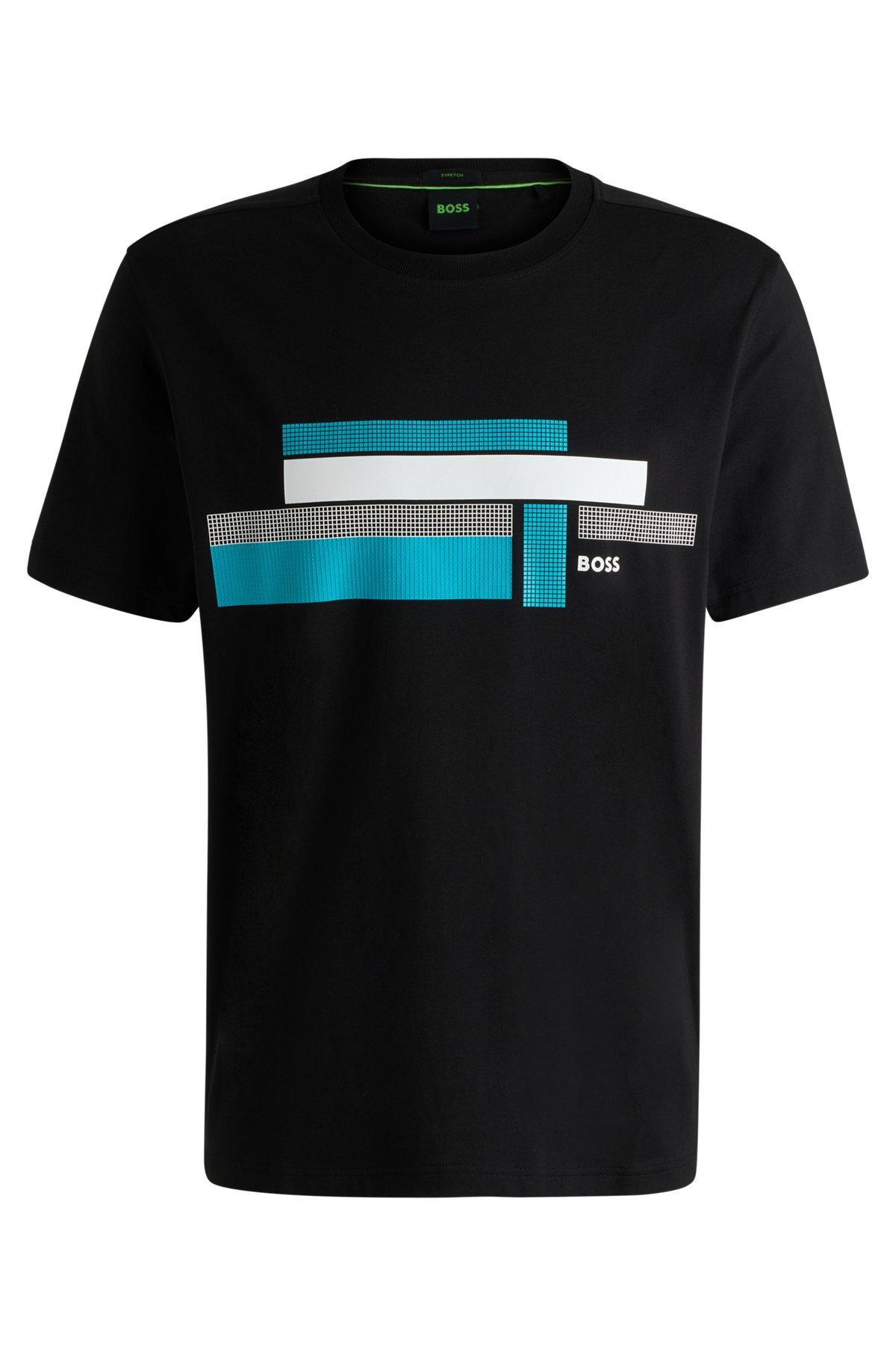 BOSS - Relaxed-fit T-shirt in stretch fabric with logo artwork - Black