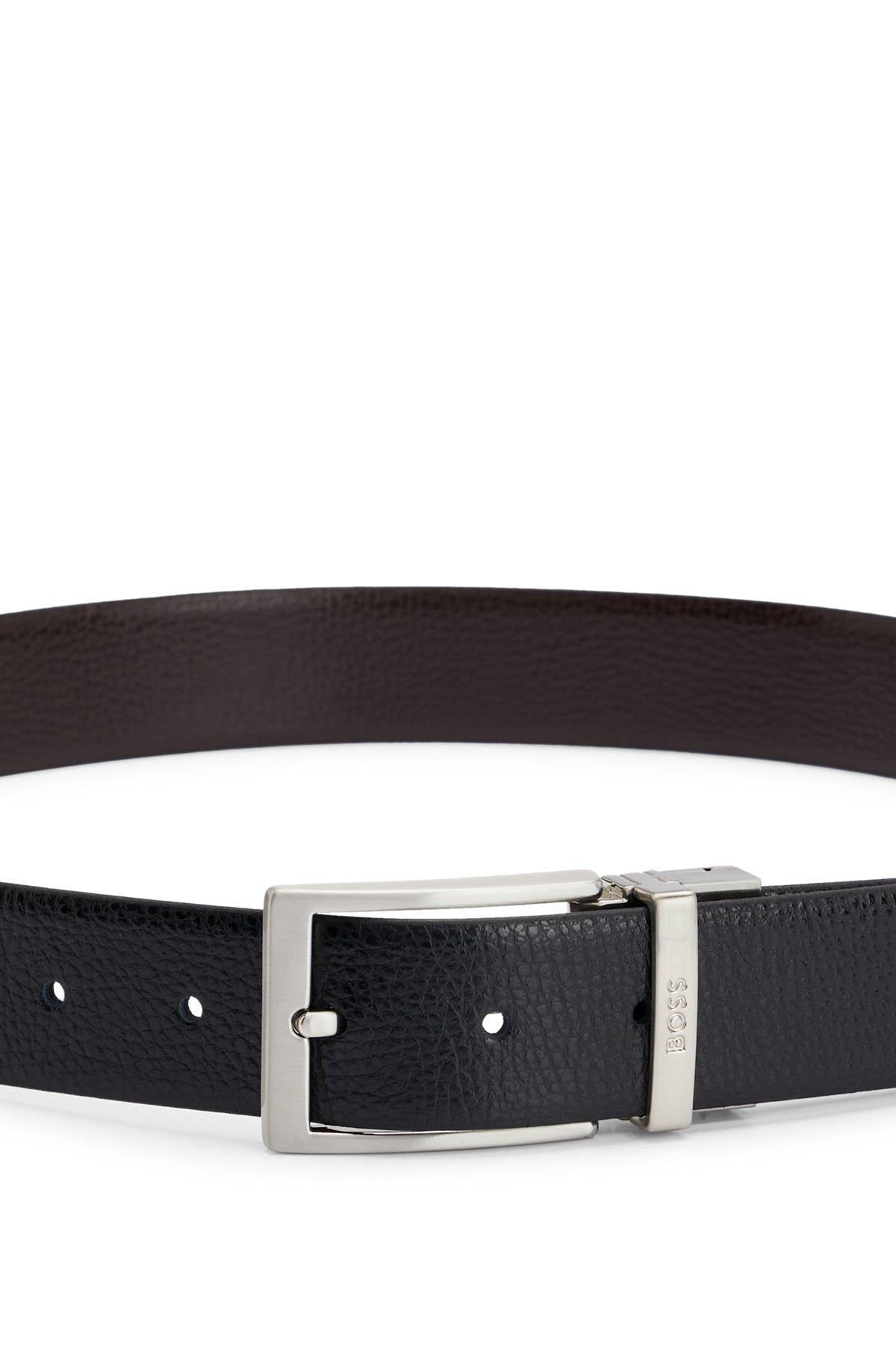 Reversible belt in grained Italian leather with logo keeper - Black Business Belts from BOSS for Men for in the official HUGO BOSS Online Store free shipping