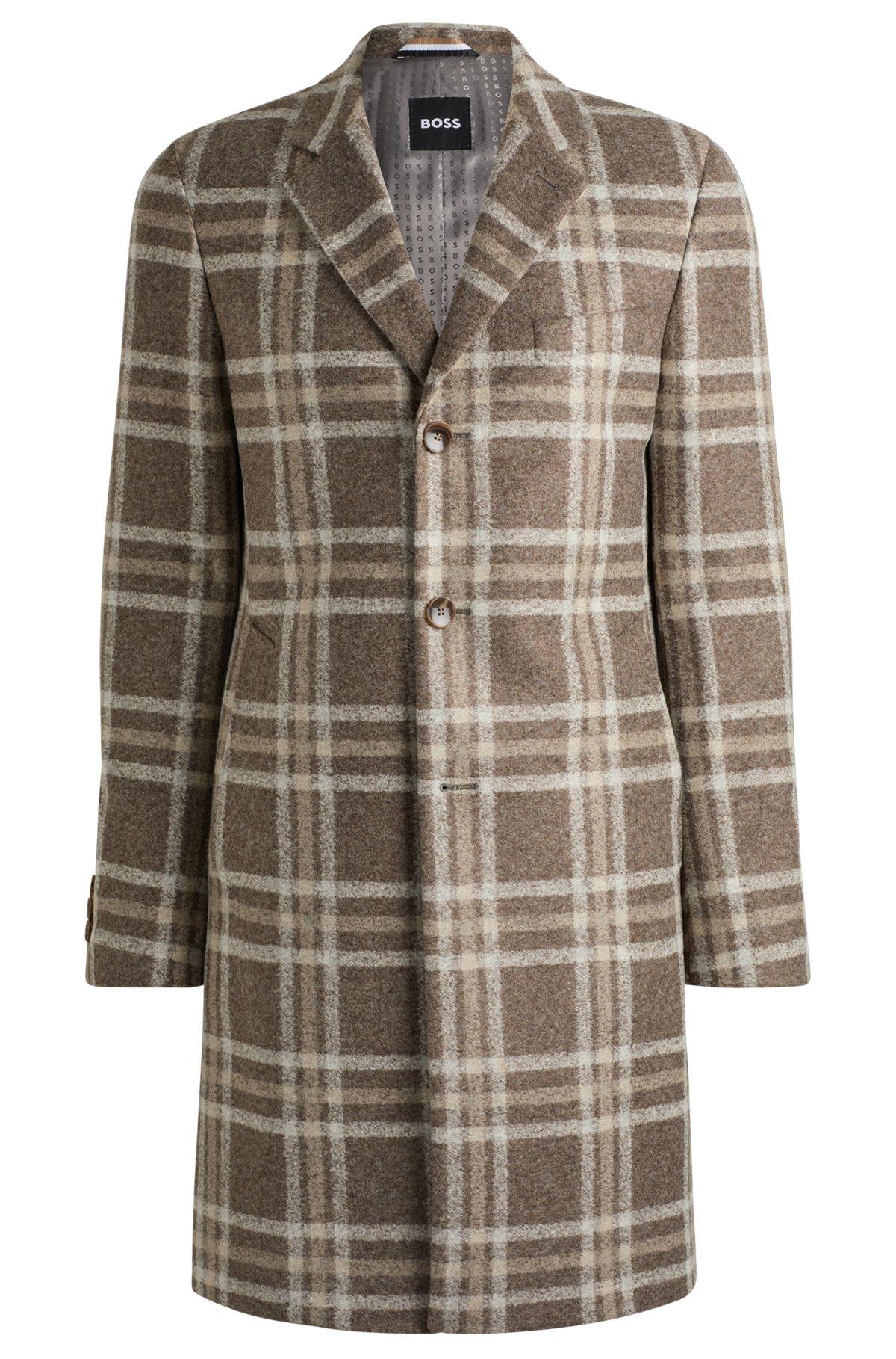 Details: Be the boss of your own style with this BOSS slim-fit coat. The distinctive all-over check pattern, blended with wool, adds a touch of sophistication to any outfit. Notched lapels and an open front make for a sleek and tailored look. This coat also features welt chest pockets and fully lined for added comfort