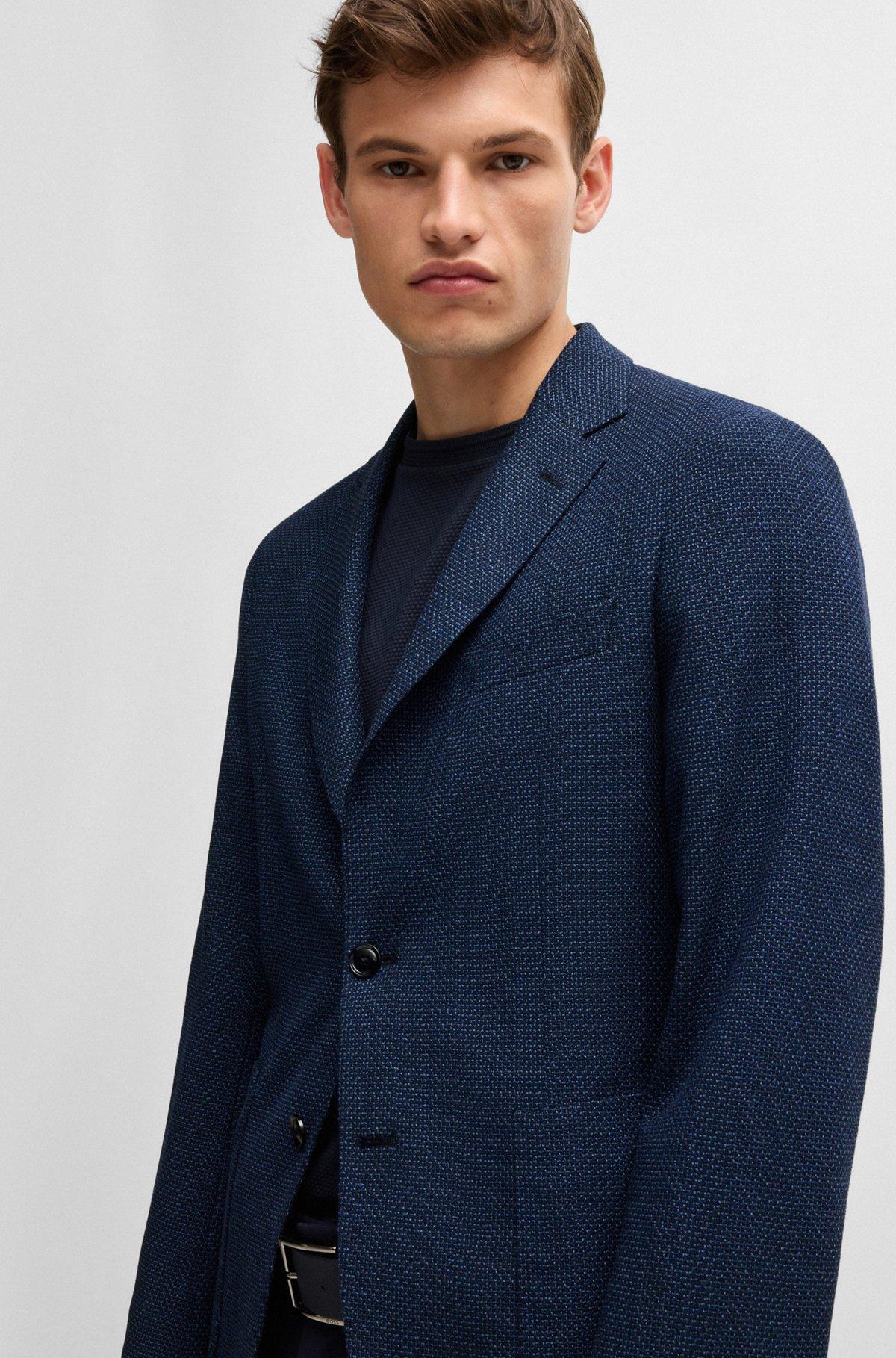 BOSS - Slim-fit jacket in micro-patterned stretch cloth - Dark Blue