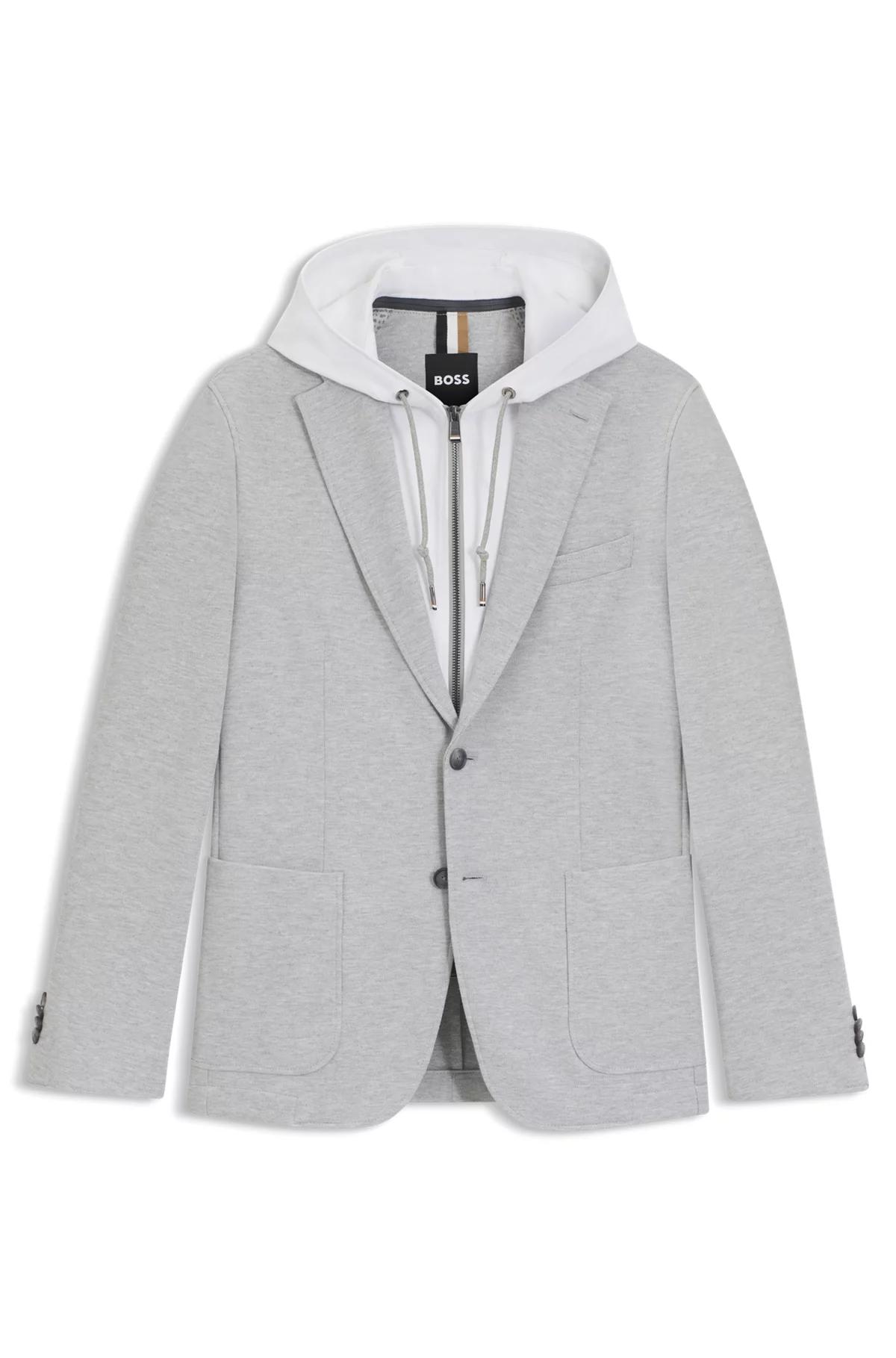 Slim-fit jacket with integrated hoodie - Light Grey Sport Coats from BOSS for Men for in the official HUGO BOSS Online Store free shipping