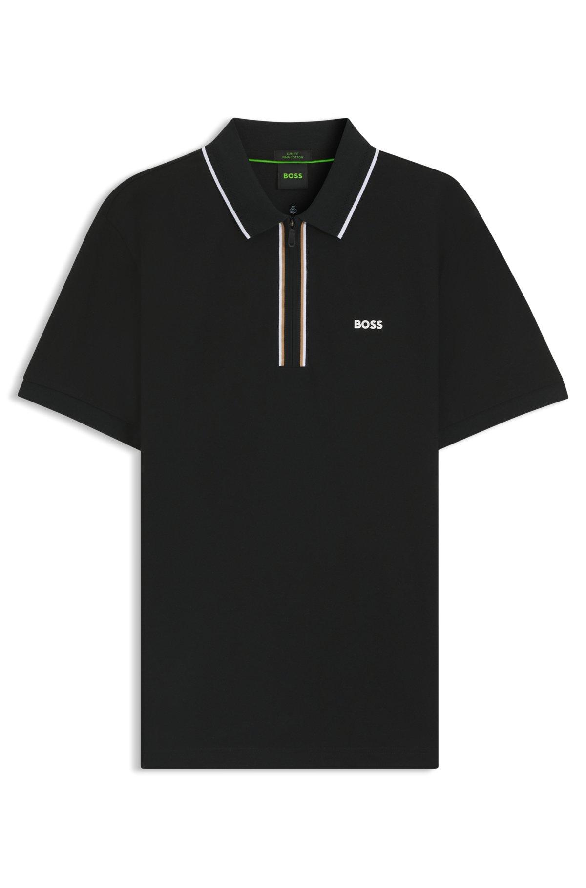 Slim-fit polo shirt in quick-dry stretch cotton - Black Polo Shirts from BOSS for Men for in the official HUGO BOSS Online Store free shipping