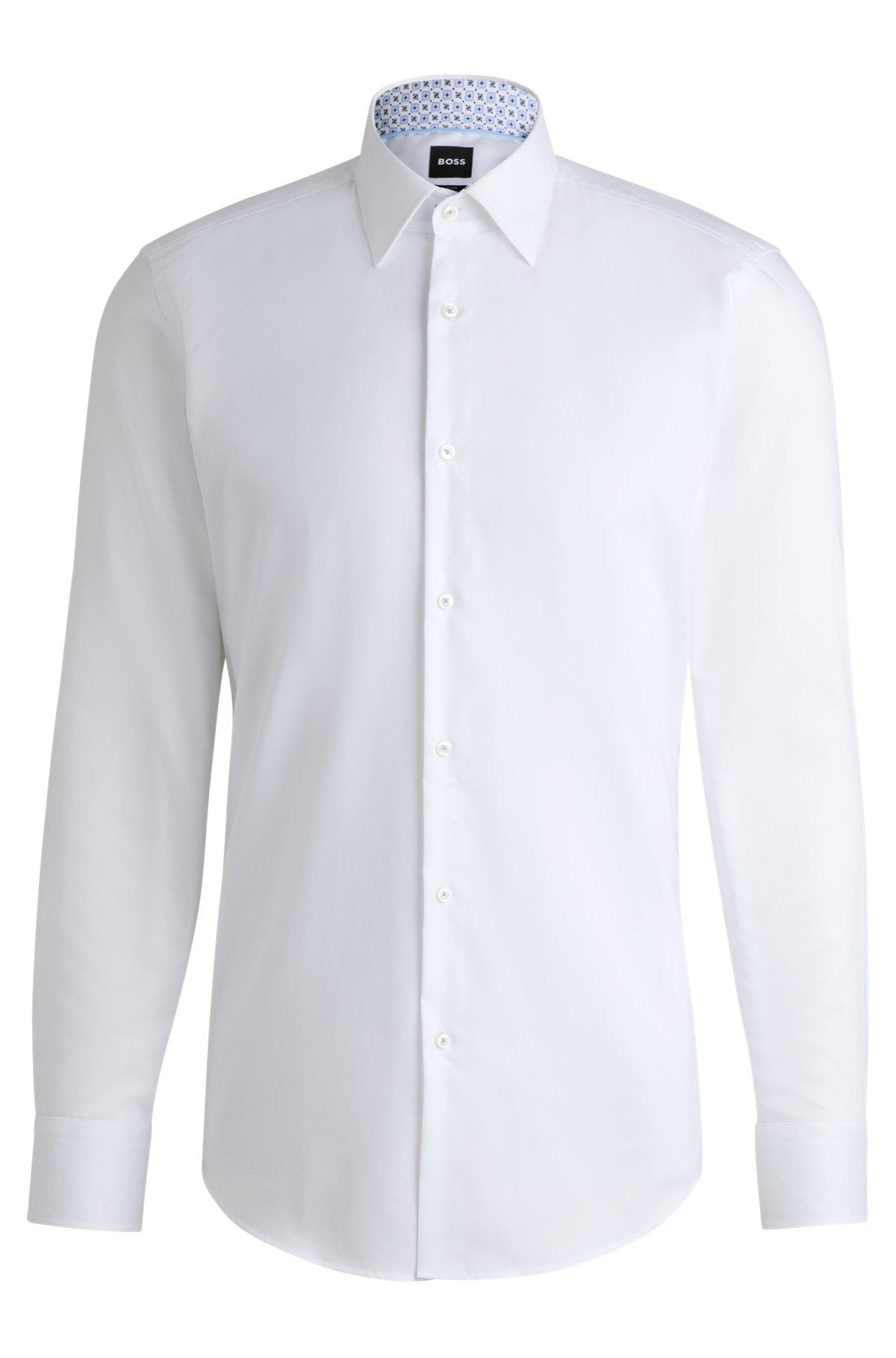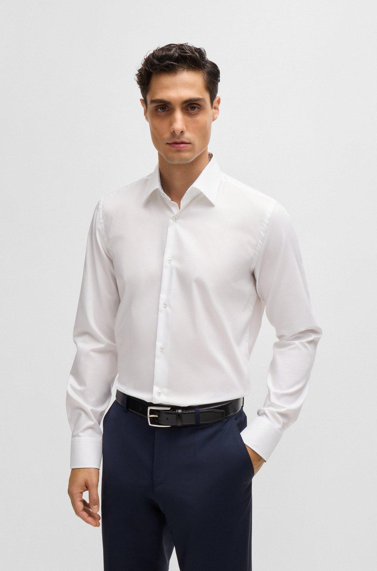 BOSS - Slim-fit shirt in easy-iron cotton poplin - White