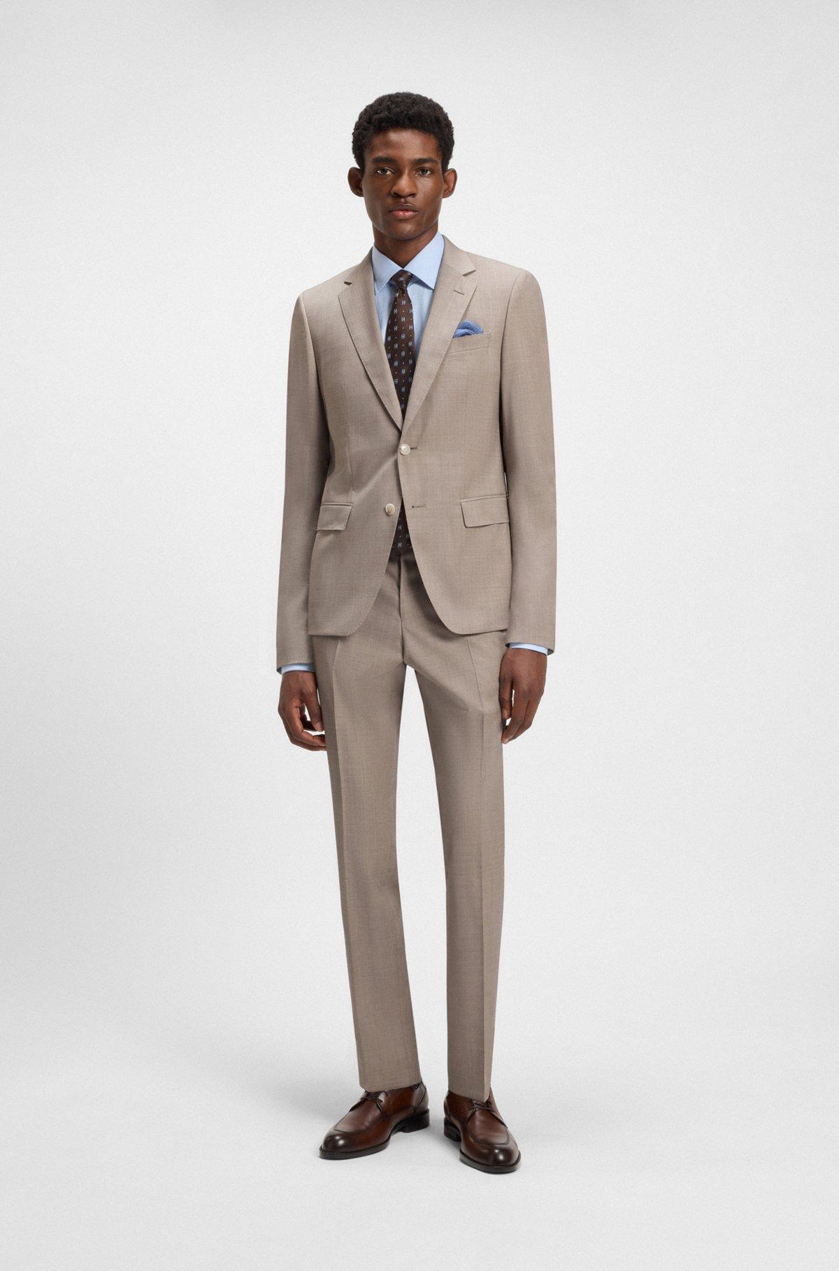 BOSS - Slim-fit three-piece suit in melange wool - Light Beige