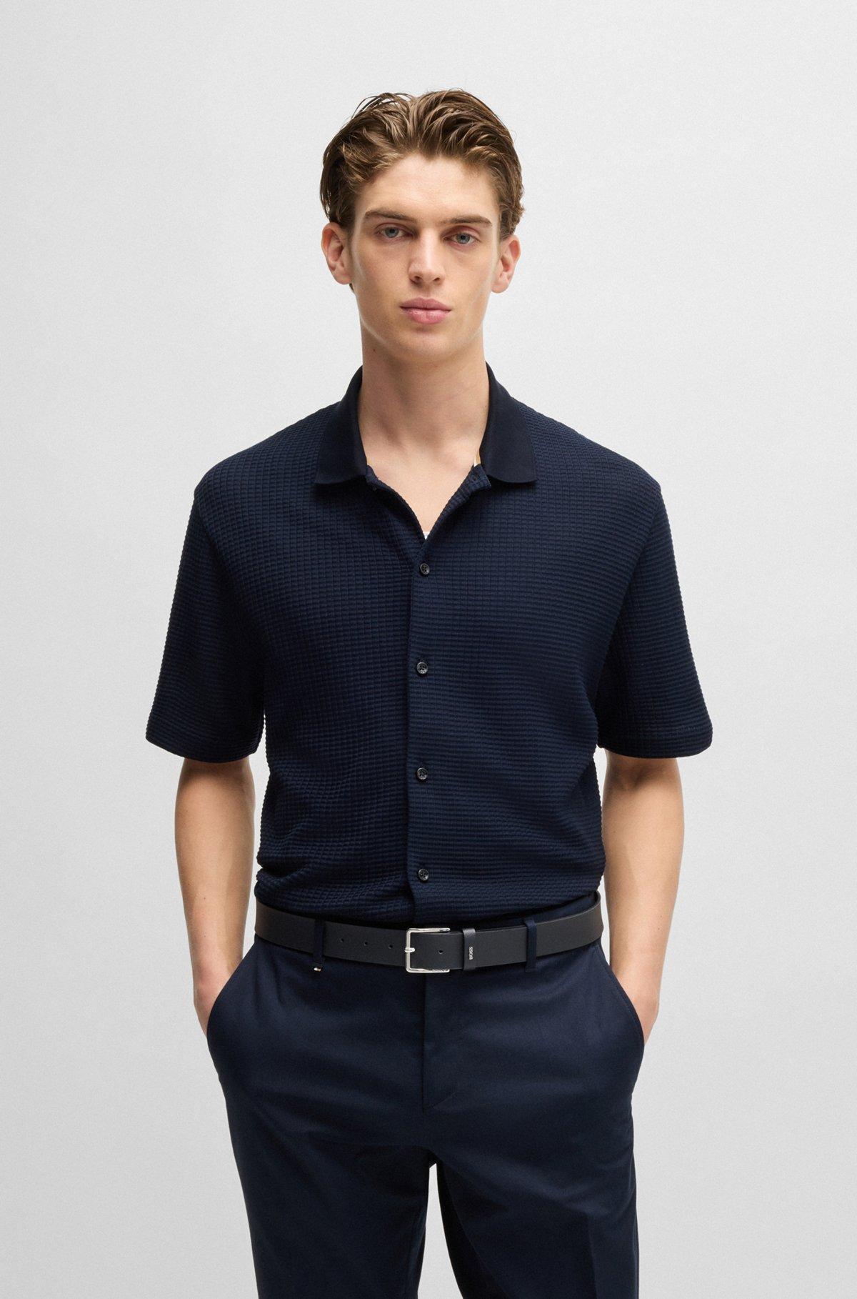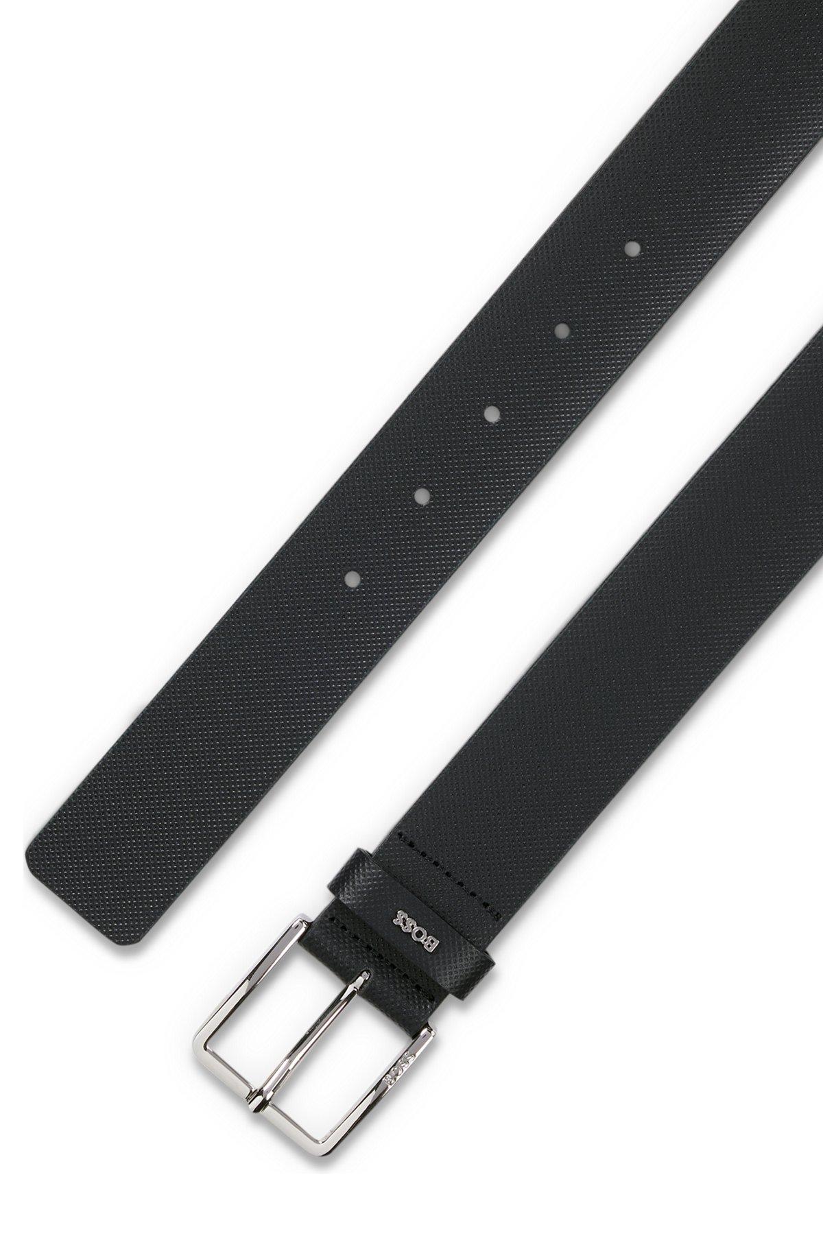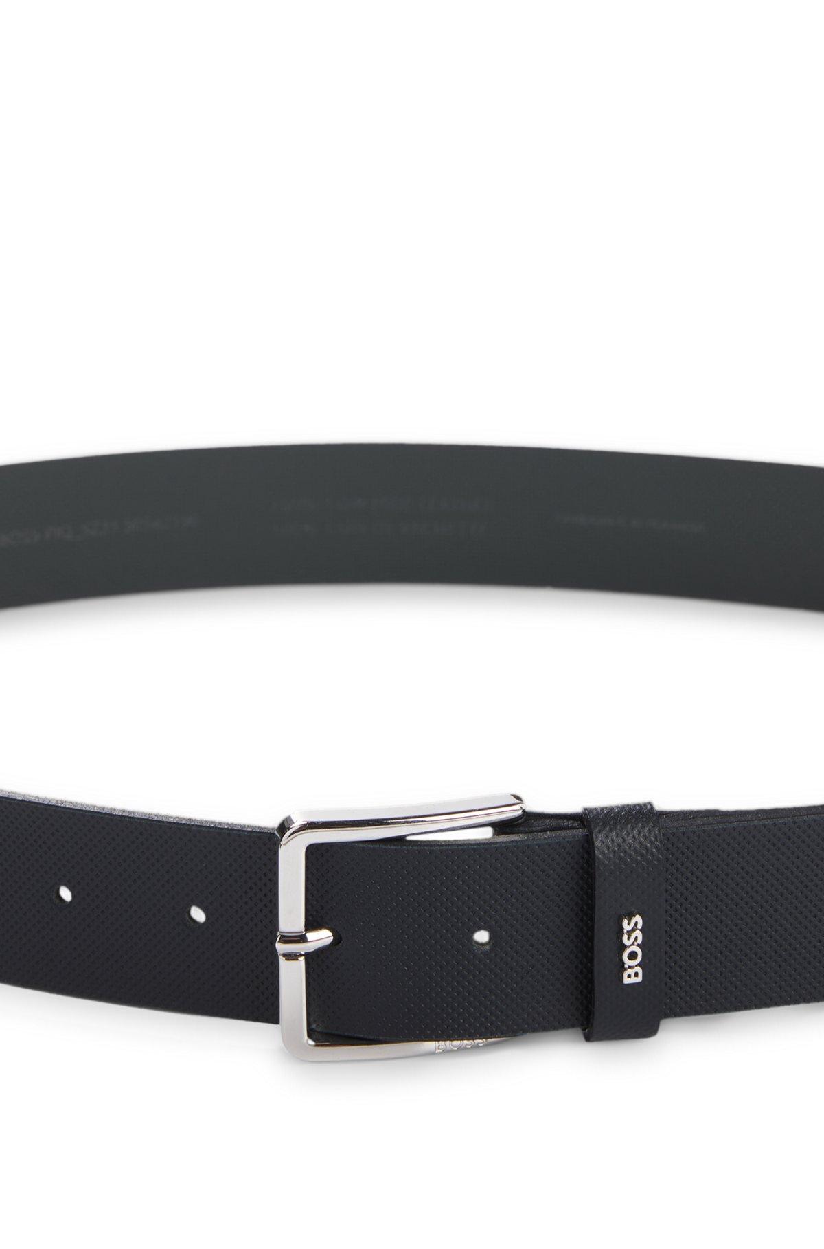 BOSS - Structured-leather belt with logo keeper - Dark Blue