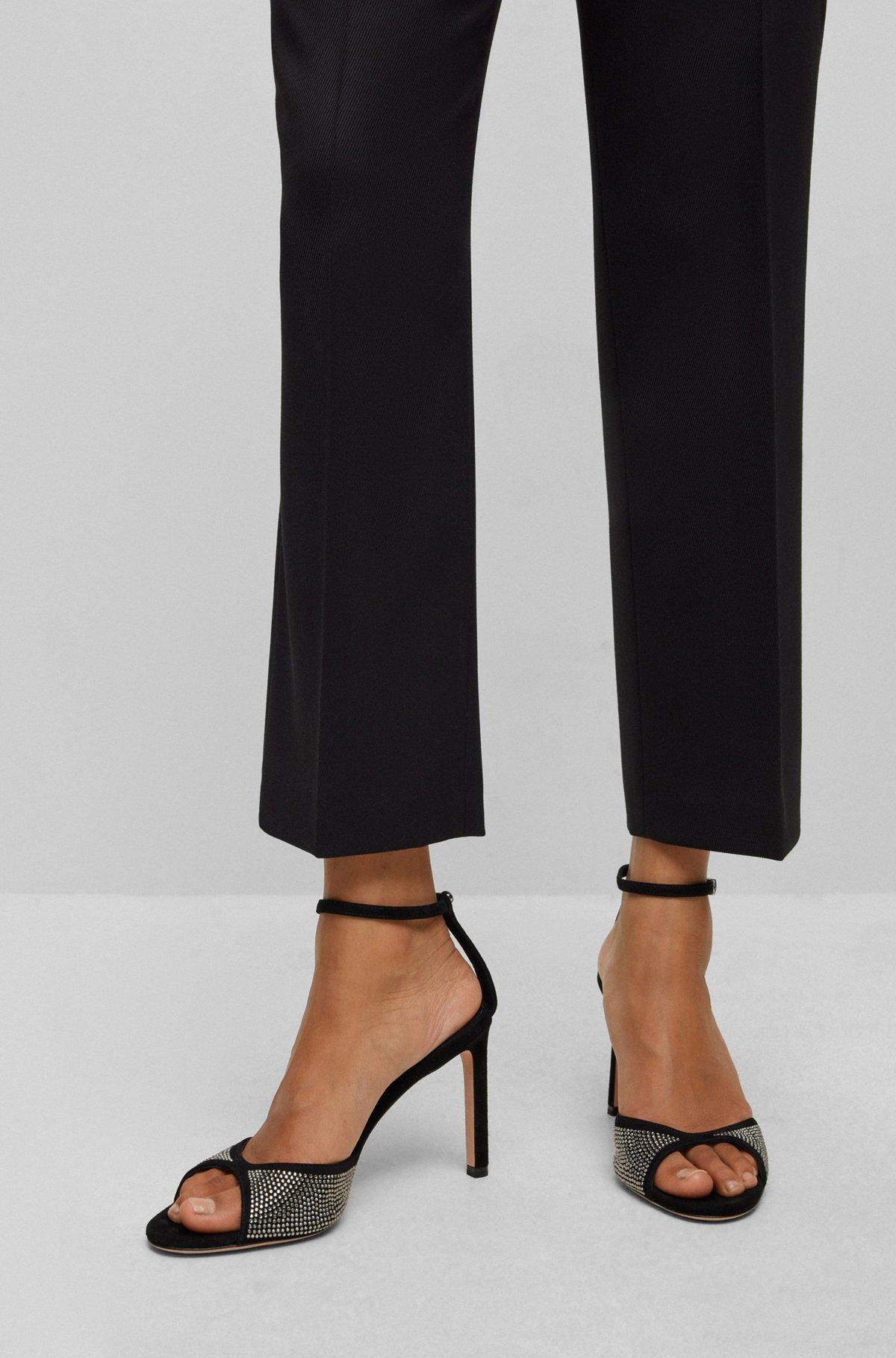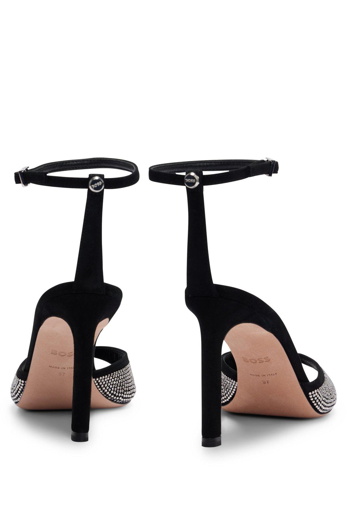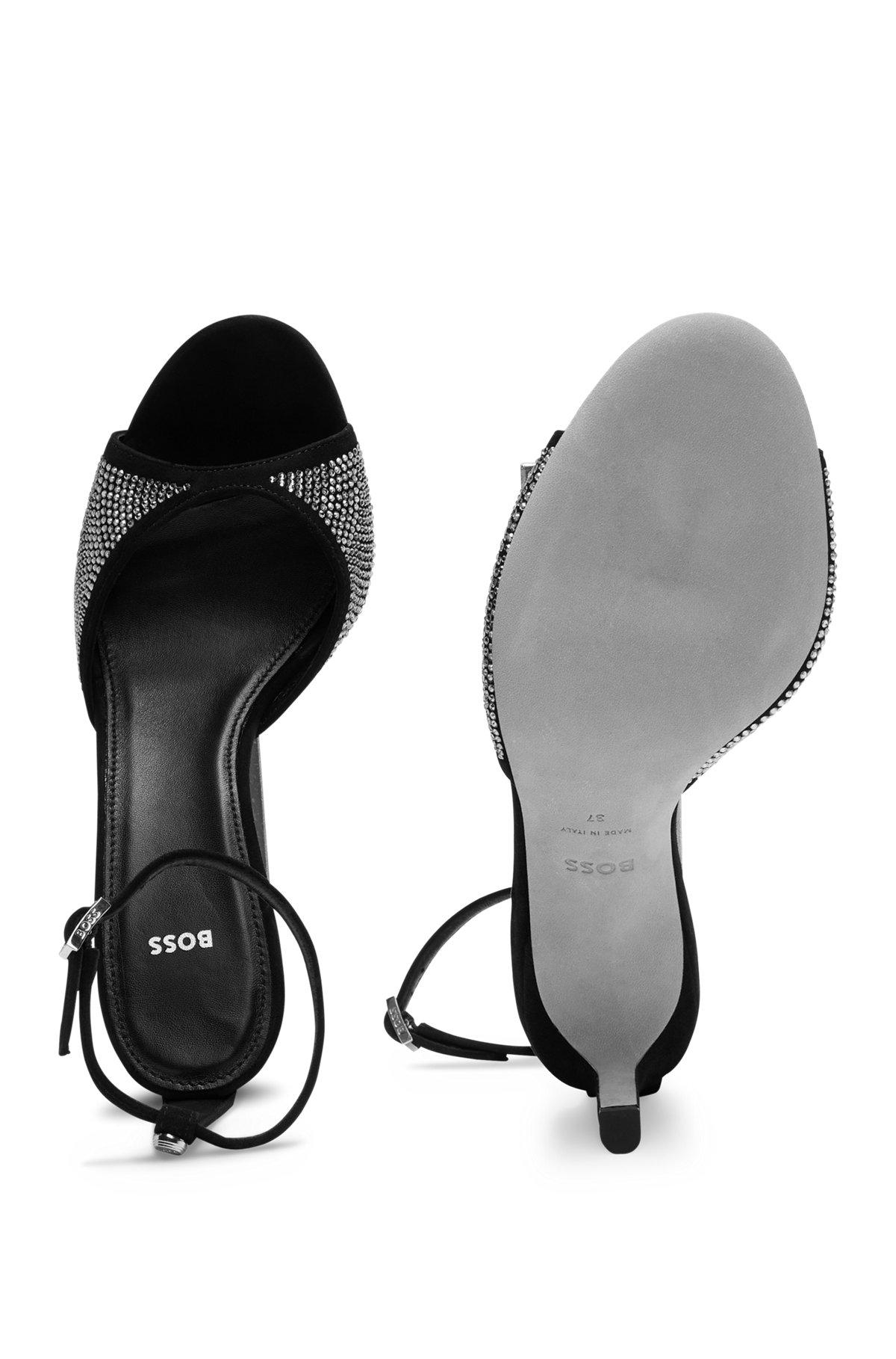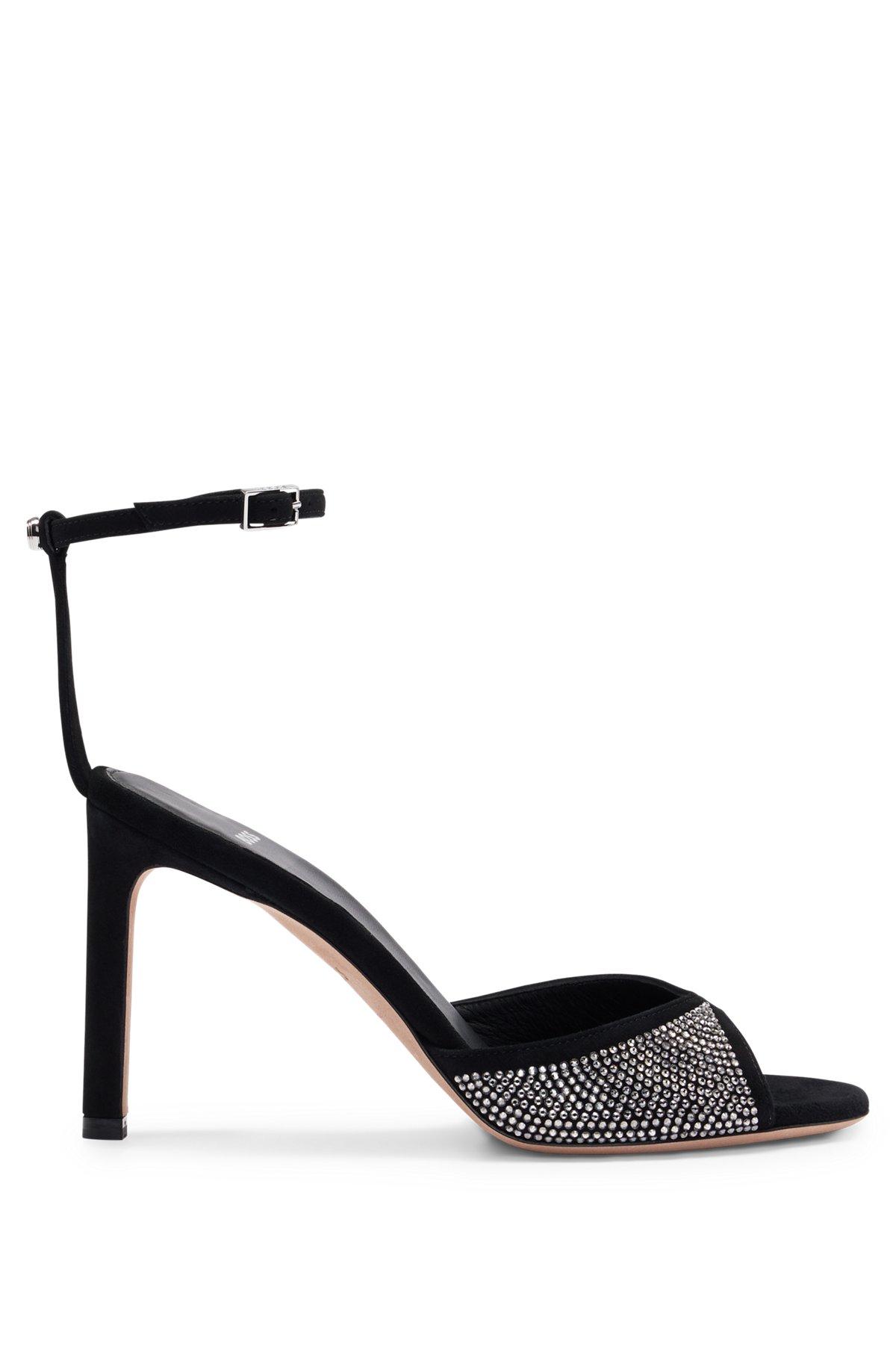 BOSS - Suede sandals with crystal studs and buckle - Black