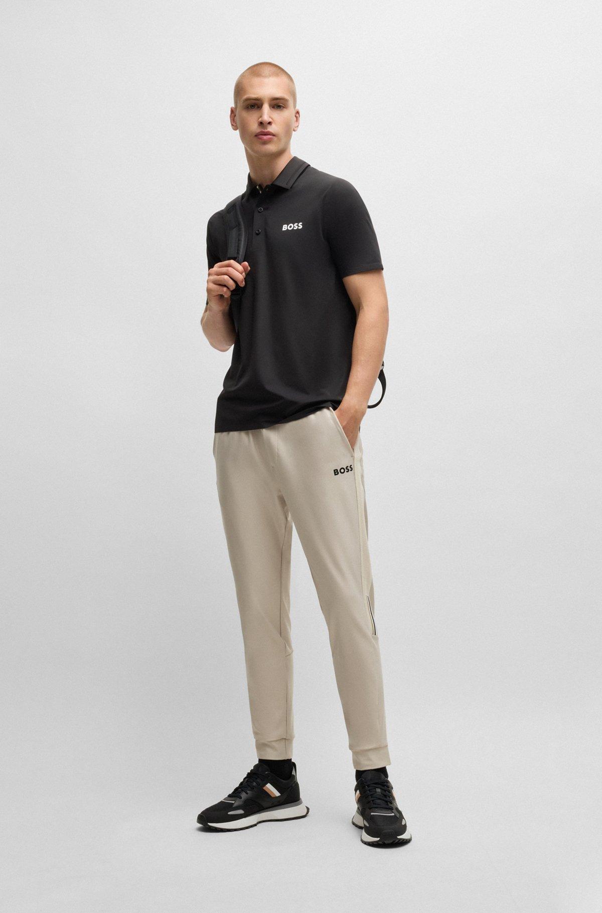 A slim-fit polo shirt by BOSS, designed in moisture-wicking fabric. Featuring signature details, this innovative top offers odor control and UV protection. Part of the dynamic BOSS x Matteo Berrettini capsule collection, co-created by the Italian professional tennis player.
