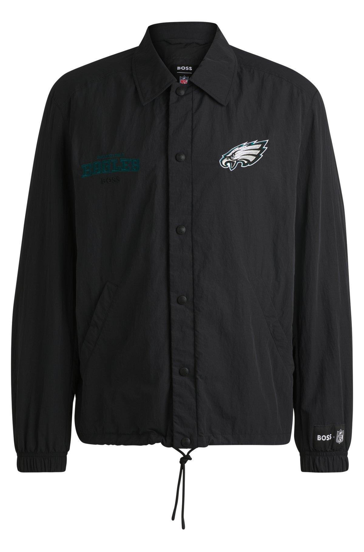 A fully lined coach jacket by BOSS. Featuring embroidered branding and special trims, this lightweight piece is crafted in peached water-repellent fabric. BOSS x NFL is a limited capsule that spotlights 22 popular NFL teams, celebrating the lifelong commitments that their players and fanbase make.