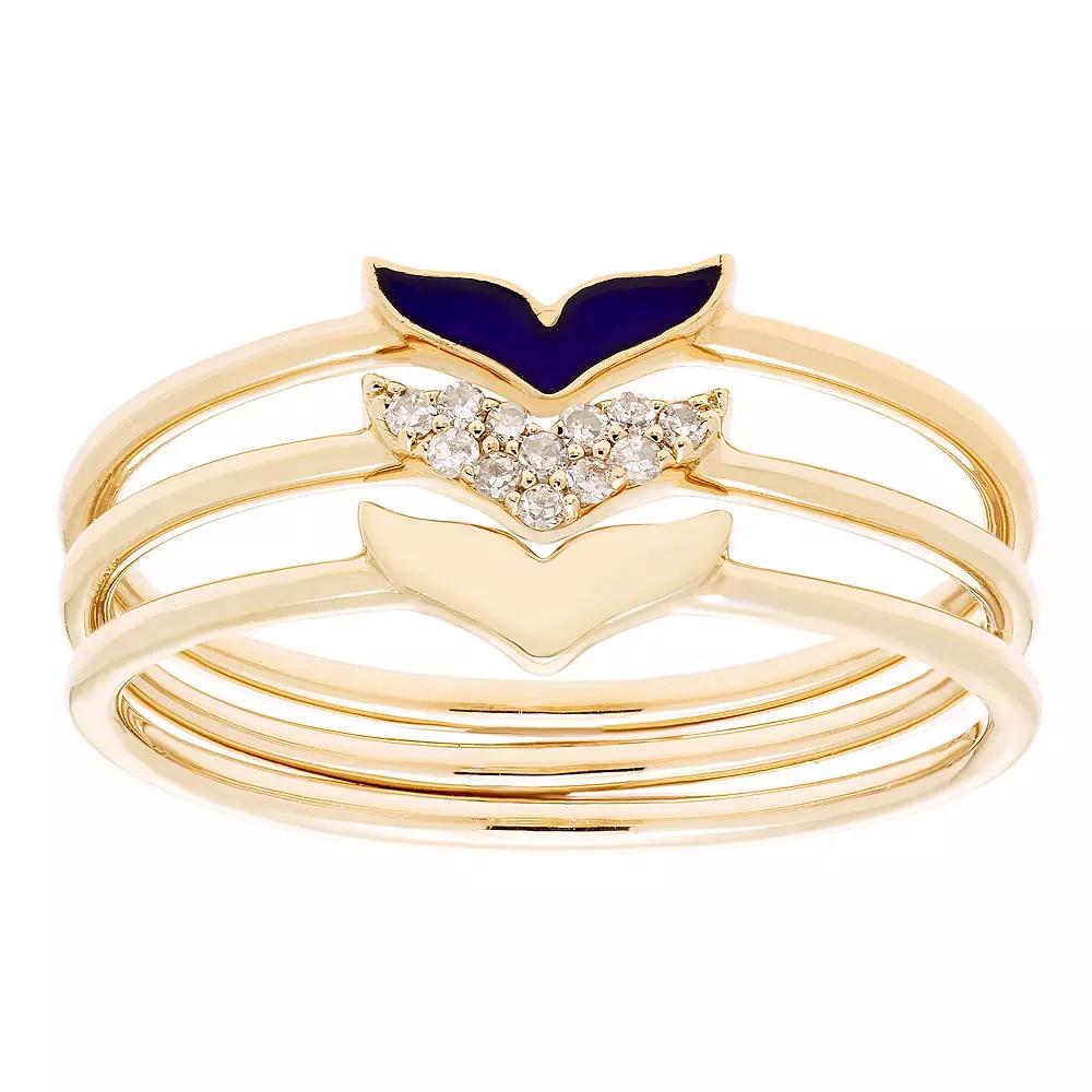 Accessorize in style with this Boston Bay Diamonds 14k gold over sterling silver diamond accent & enamel 3 stack ring. Click on this JEWELRY & WATCHES GUIDE to learn about fit, styles, materials and more! Accessorize in style with this Boston Bay Diamonds 14k gold over sterling silver diamond accent & enamel 3 stack ring. Click on this JEWELRY & WATCHES GUIDE to learn about fit, styles, materials and more! FEATURES Width: 3.5 mm Nickel free Metal: sterling silver Plating: 14k gold Finish: enameled, polished Packaging: boxedDIAMOND DETAILS Total weight: less than 1/10 ct. Color grade: H-I Clarity: I2-I3 Shape: round Setting: prong Gemstones may have been treated to enhance their appearance. Special care may be required. Please visit our Gemstone Treatment & Special Care Guide for more information. Diamond weights are approximate. Diamond Total Weights may vary between .01 and .13 ct. Some diamonds consist of fewer than 17 facets. Image(s) may be enlarged to show detail. Size: 7. Color: White. Gender: female. Age Group: adult.