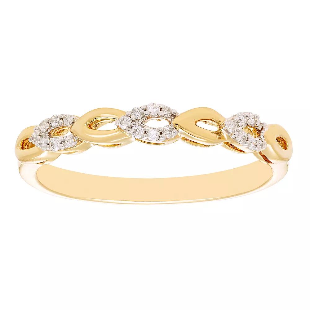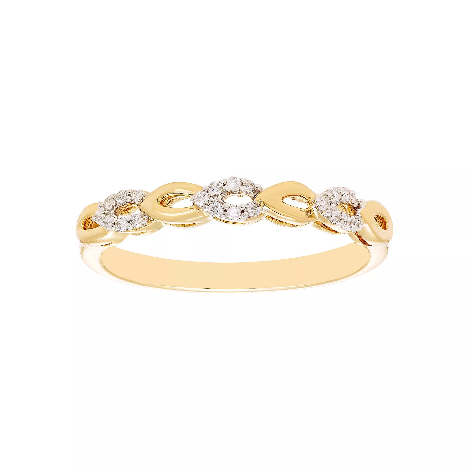 Add a dazzling accent to your ensemble with this diamond accent stacking ring by Boston Bay Diamonds. Click on this JEWELRY & WATCHES GUIDE to learn about fit, styles, materials and more! Add a dazzling accent to your ensemble with this diamond accent stacking ring by Boston Bay Diamonds. Click on this JEWELRY & WATCHES GUIDE to learn about fit, styles, materials and more! FEATURES Length: 2.81 mm Shank style: 2.3 mm, anniversary, scalloped, stackable Band fit: comfort fit Metal: sterling silver Plating: 14k gold, rhodium Finish: polished Packaging: boxed Nickel freeDIAMOND DETAILS Total weight: less than 1/10 ct. Color grade: G-H Clarity: I2-I3 Shape: round Setting: micro prong Diamond equivalent carat (ct.) Total Weight (T.W.) represents the approximate total weight of diamonds of equivalent appearance. Diamond weights are approximate. Diamond Total Weights may vary between .01 and .13 ct. Some diamonds consist of fewer than 17 facets. Size: 5. Color: White. Gender: female. Age Group: adult. Material: Gold Over Sterling.