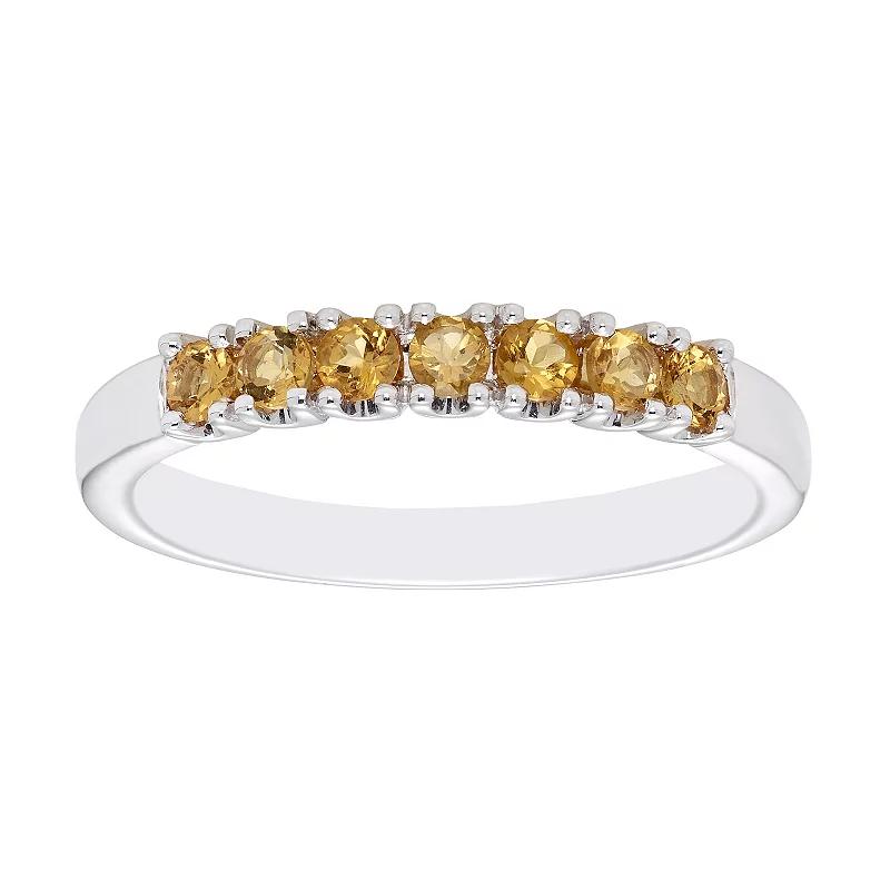 Featuring round-cut citrine stones, this Boston Bay Diamonds stack ring adds sparkling color to your everyday look. Metal: sterling silver Packaging: boxed Plating: rhodium Width: 3 mm Finish: polishedSTONE DETAILS Stone type: citrine November birthstone Stone size: 2.5 mm x 2.5 mm Shape: round Setting: prong Gemstones may have been treated to enhance their appearance. Special care may be required. Please visit our Gemstone Treatment & Special Care Guide for more information. Size: 6. Color: Yellow. Gender: female. Age Group: adult.