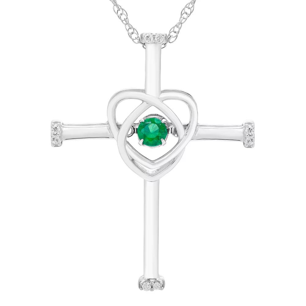 Glimmering with a lab-grown emerald center stone and diamond accents, this Boston Bay Diamonds cross pendant necklace evokes divine beauty. Click on this JEWELRY & WATCHES GUIDE to learn about fit, styles, materials and more! Glimmering with a lab-grown emerald center stone and diamond accents, this Boston Bay Diamonds cross pendant necklace evokes divine beauty. Click on this JEWELRY & WATCHES GUIDE to learn about fit, styles, materials and more! FEATURES Chain length: 18 in. Chain type: rope Metal: sterling silver Plating: rhodium Finish: polished Packaging: boxed Nickel freeSTONE DETAILS Stone type: lab-created emerald Total weight: 1/3 ct. Center stone weight: 1/4 ct. Center stone size: 3.50 mm Shape: round brilliant Setting: micro prongDIAMOND DETAILS Total weight: less than 1/10 ct. Shape: round brilliant Setting: prong Diamond weights are approximate. Diamond Total Weights may vary between .01 and .13 ct. Some diamonds consist of fewer than 17 facets. Gemstones may have been treated to enhance their appearance. Special care may be required. Please visit our Gemstone Treatment & Special Care Guide for more information. Size: 18. Color: Green. Gender: female. Age Group: adult.