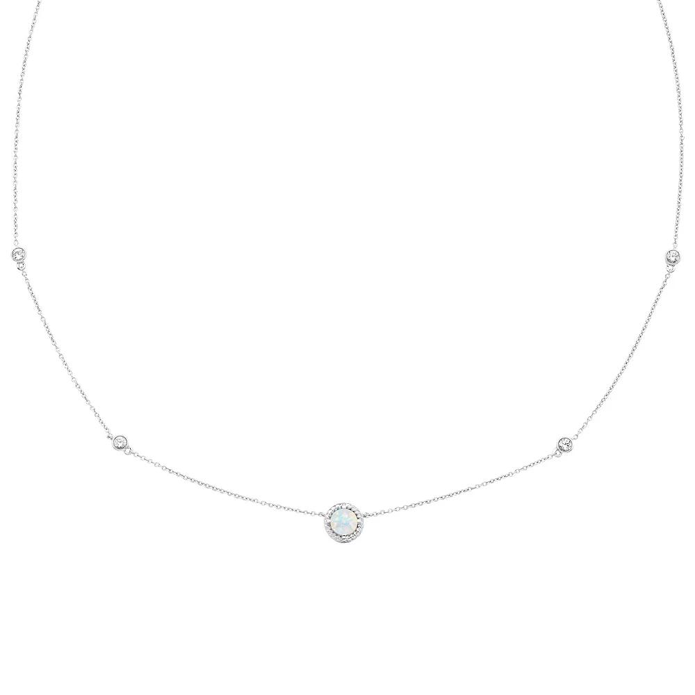 Add a touch of elegance to your ensemble with this opal and lab-grown white sapphire necklace from Boston Bay Diamonds. Click on this JEWELRY & WATCHES GUIDE to learn about fit, styles, materials and more! Add a touch of elegance to your ensemble with this opal and lab-grown white sapphire necklace from Boston Bay Diamonds. Click on this JEWELRY & WATCHES GUIDE to learn about fit, styles, materials and more! FEATURES Chain length: 18 in. + 2-in. extender Chain type: cable Metal: sterling silver Plating: rhodium Finish: polished Packaging: boxed Nickel freeSTONE DETAILS Stone type: opal Total weight: 1 1/10 ct. Center stone weight: 3/4 ct. Center stone size: 5.0 mm Shape: round brilliant Setting: bezel, prong Gemstones may have been treated to enhance their appearance. Special care may be required. Please visit our Gemstone Treatment & Special Care Guide for more information. Size: 18-20 ADJ. Color: Multicolor. Gender: female. Age Group: adult.