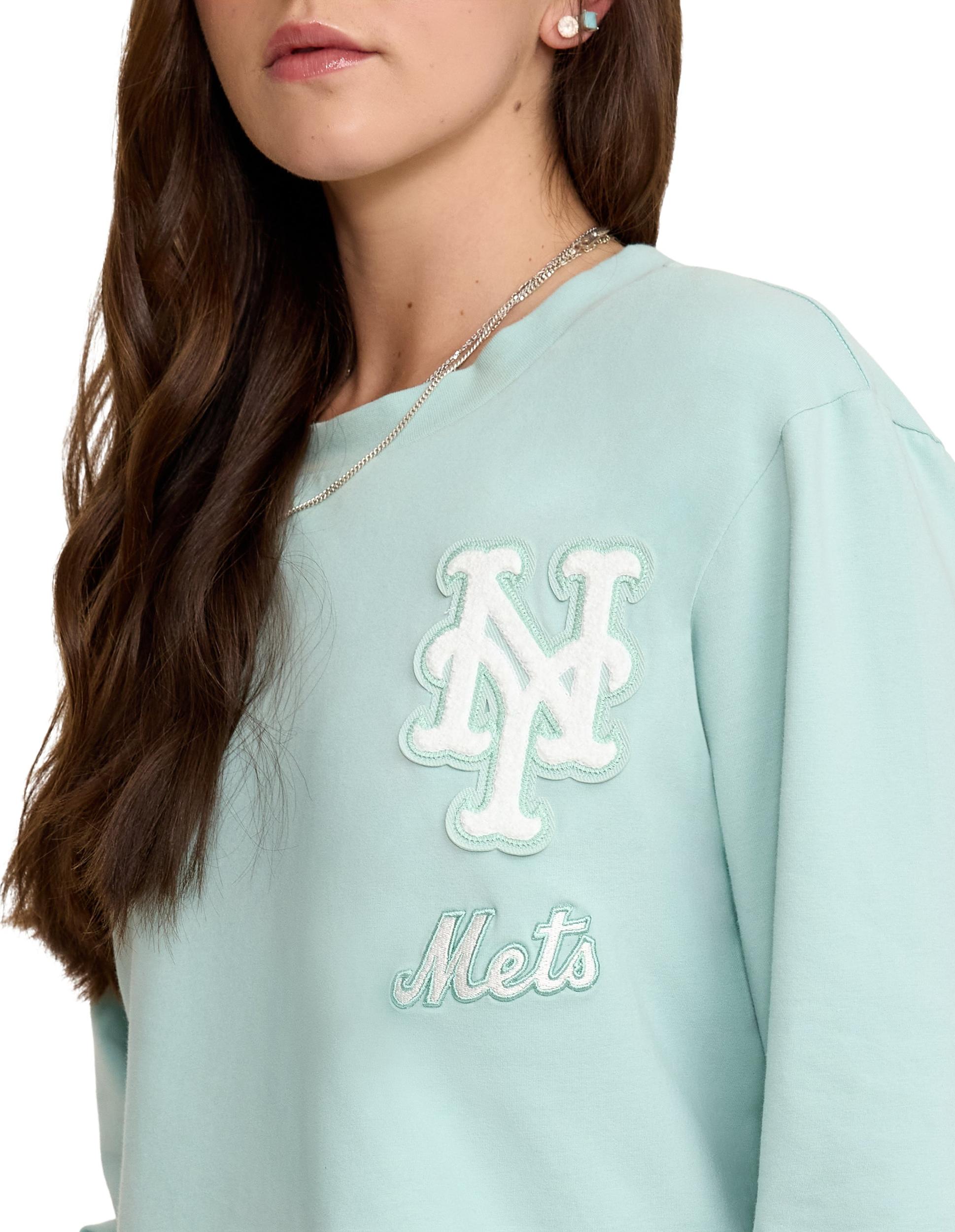 The Los Angeles Dodgers Minty Breeze Logo Select Women's T-Shirt features a chenille applique Dodgers logo above an embroidered team wordmark at the left chest.Fabric: 93% Cotton, 7% Spandex