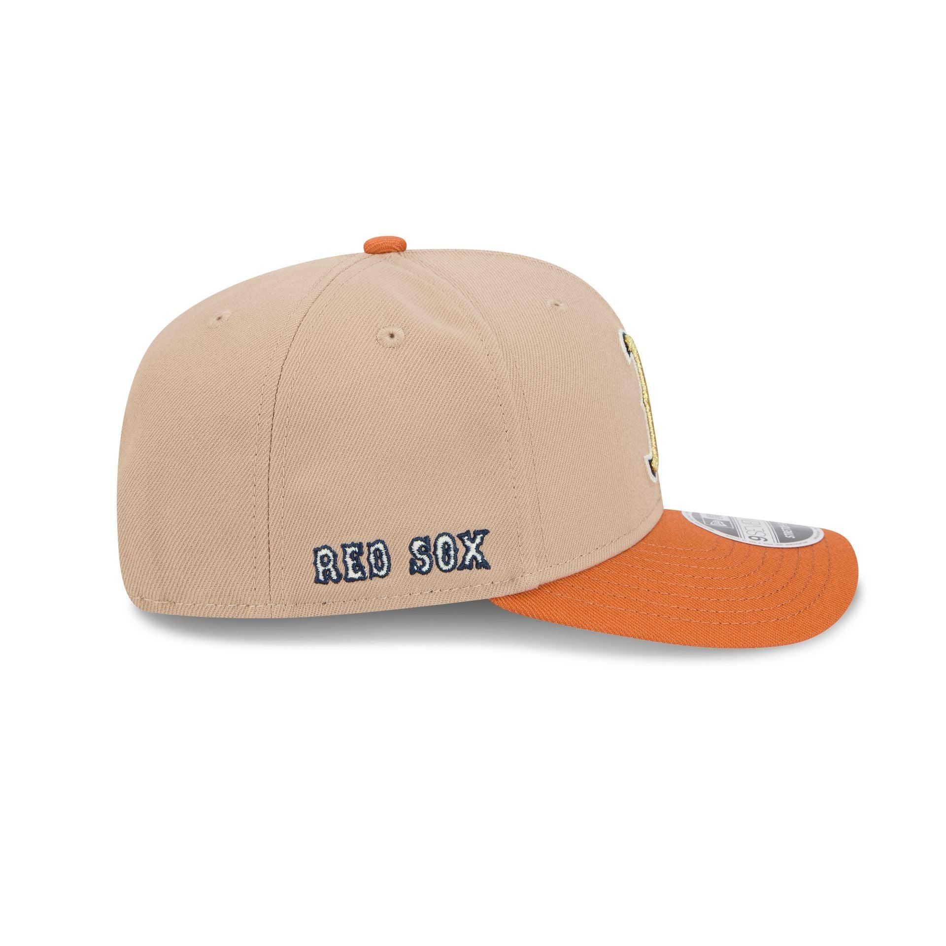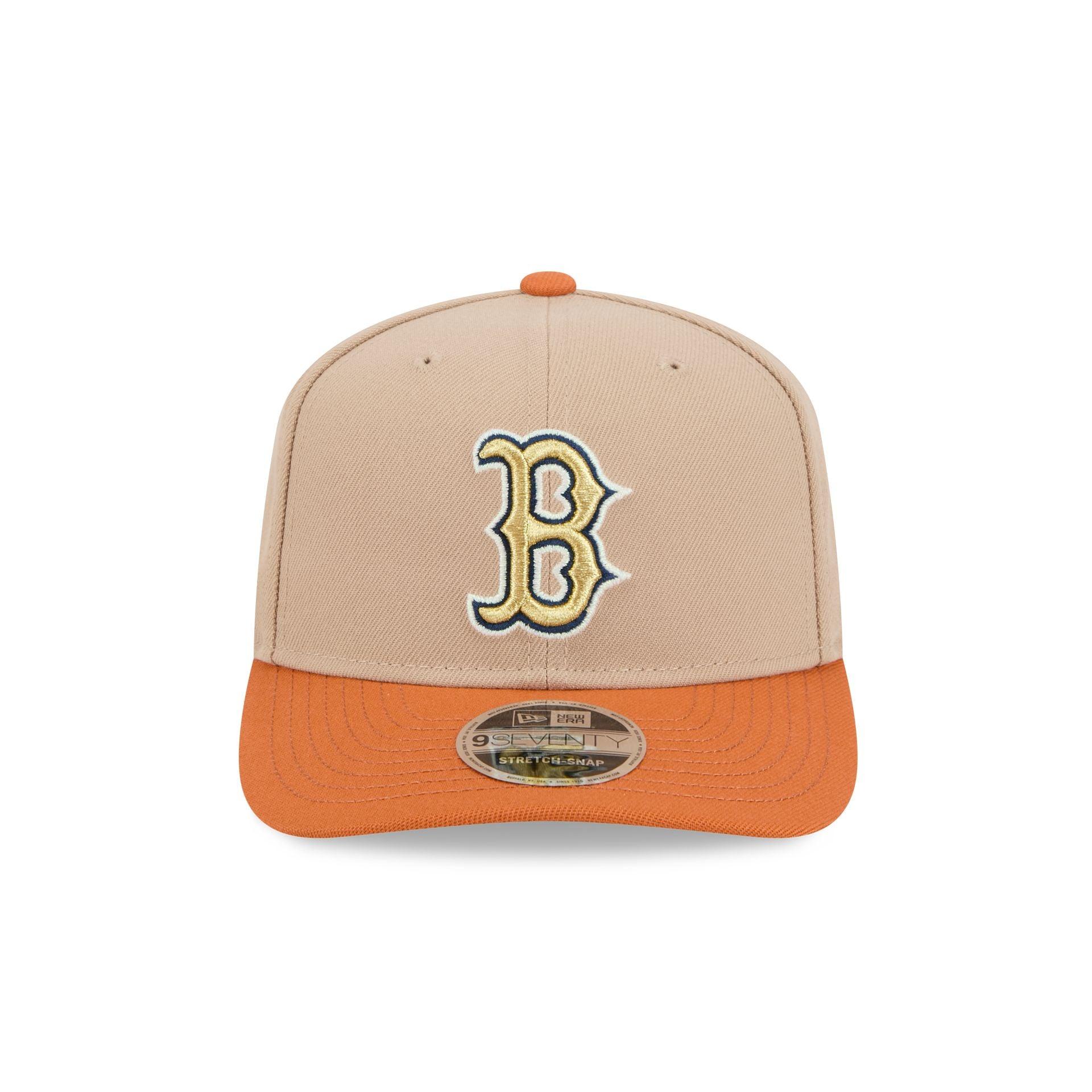 The Boston Red Sox Sandy Rust 9SEVENTY Adjustable Hat features an embroidered Red Sox logo at the front panels with a matching wordmark at the right-wear side. Additional details include a snapback closure at the rear and a green undervisor.