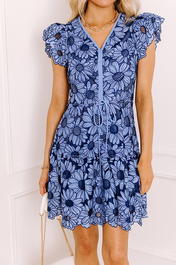 - Be ready for charming days ahead with this darling mini dress! With floral embroidery and flirty ruched detail, it's perfect for everything from brunch plans to casual gatherings.