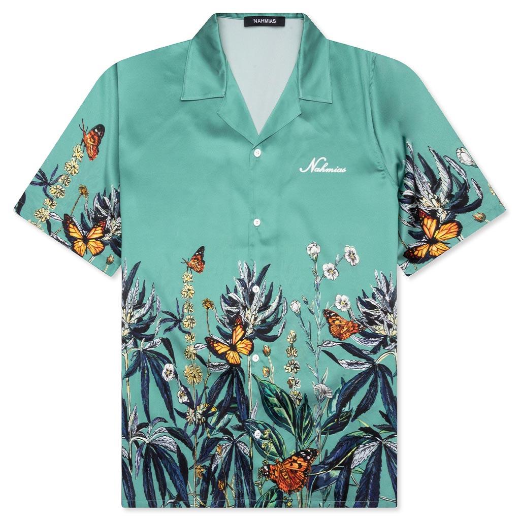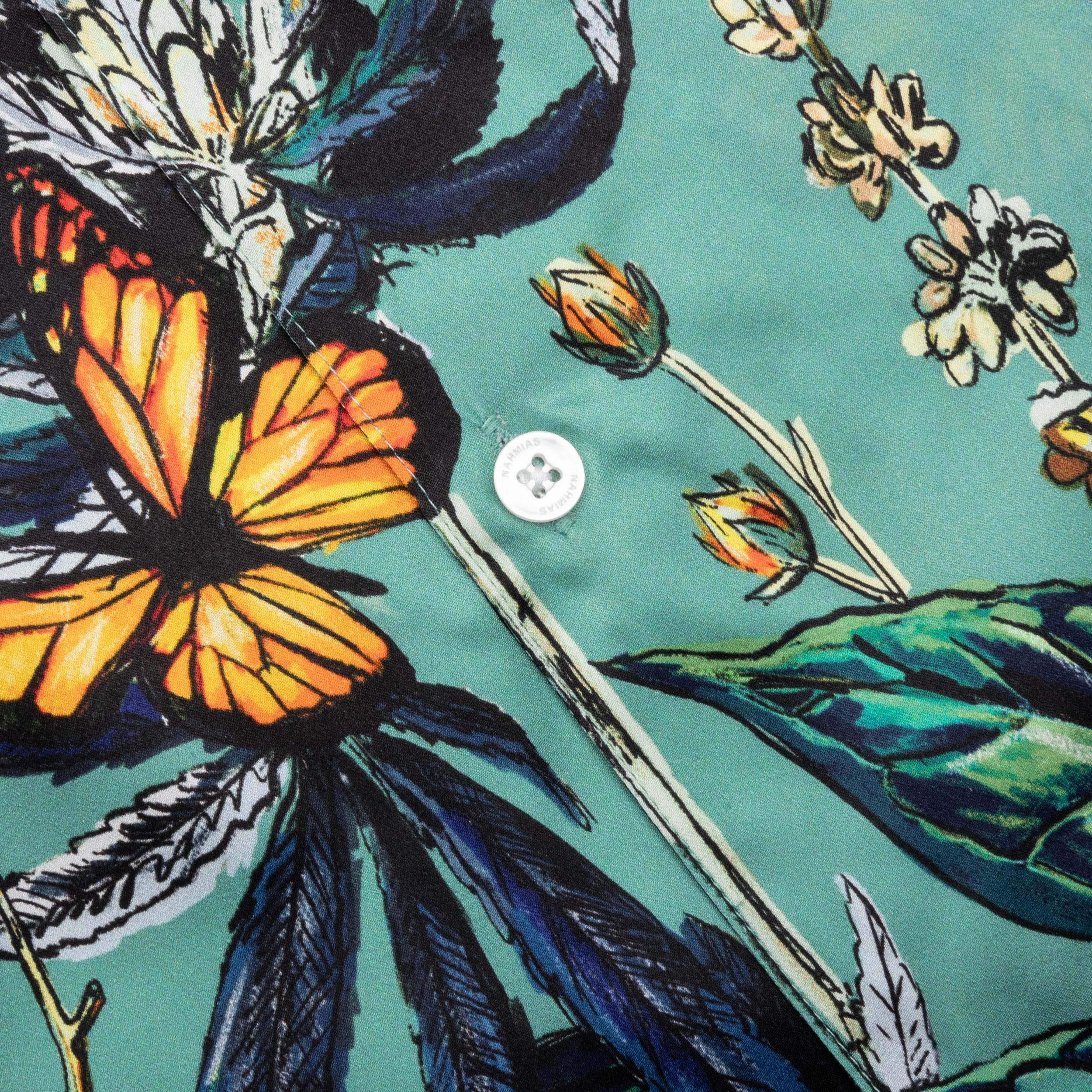 An elevated basic, the Botanical Silk S/S Shirt features a drop shoulder for a casual and slouchy fit, with a button-front closure silhouette. Made with a straight hem and cut and constructed from a silk blend, the short sleeve shirt has a standard collar and a straight hem. Allover print Nahmias logo buttons Spread collar True to size Style No: W17-S1J15-431-OB