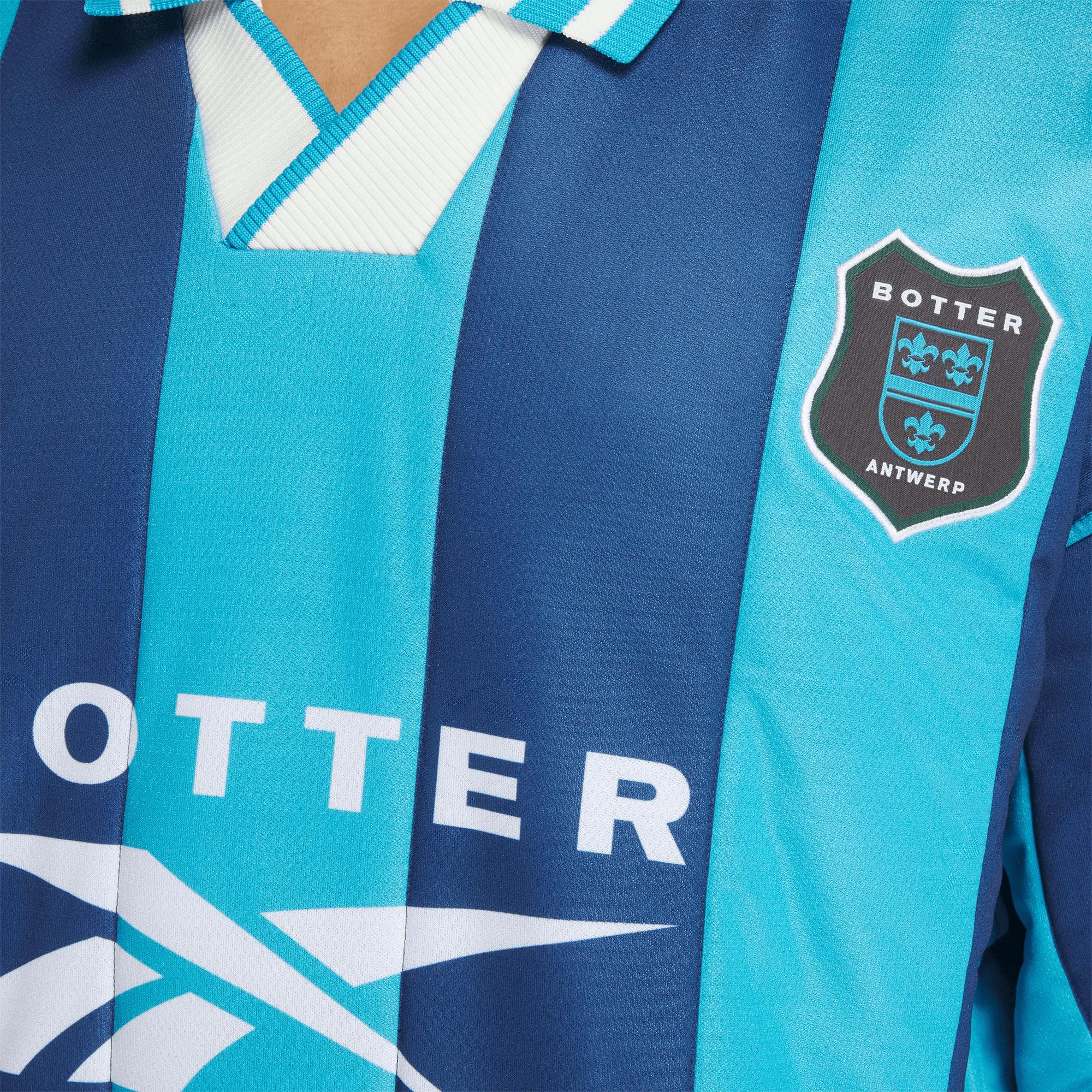 The Botter x Reebok LTD Padded LS Polo Striped Blue is a standout piece from this collection. Inspired by the vibrant street football culture of Curaçao and infused with Botter's signature aesthetic, this polo blends style, comfort, and craftsmanship. The subtle padding adds a layer of warmth and structure, while the rich blue tones echo the serene Caribbean waters, a tribute to Botter's deep connection with the ocean.