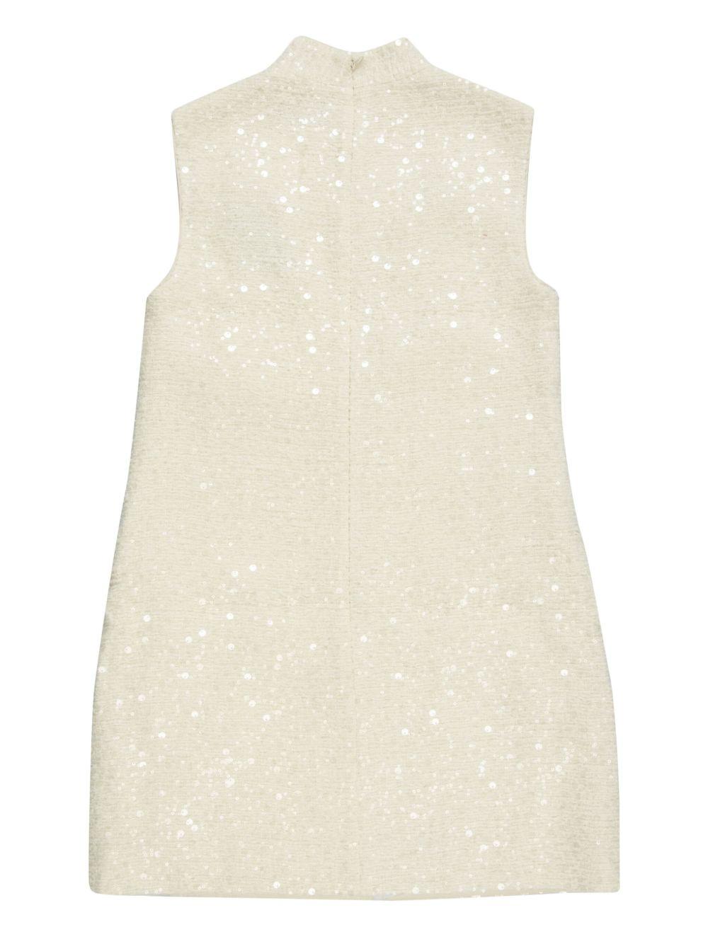 Self-Portrait bouclé flower-motif mini dress | Neutrals | light beige | concealed rear zip fastening | keyhole neck | sleeveless | sequin embellishment | Polyester/Wool | Cocktail & Party Dresses | Dresses | Clothing | Women
