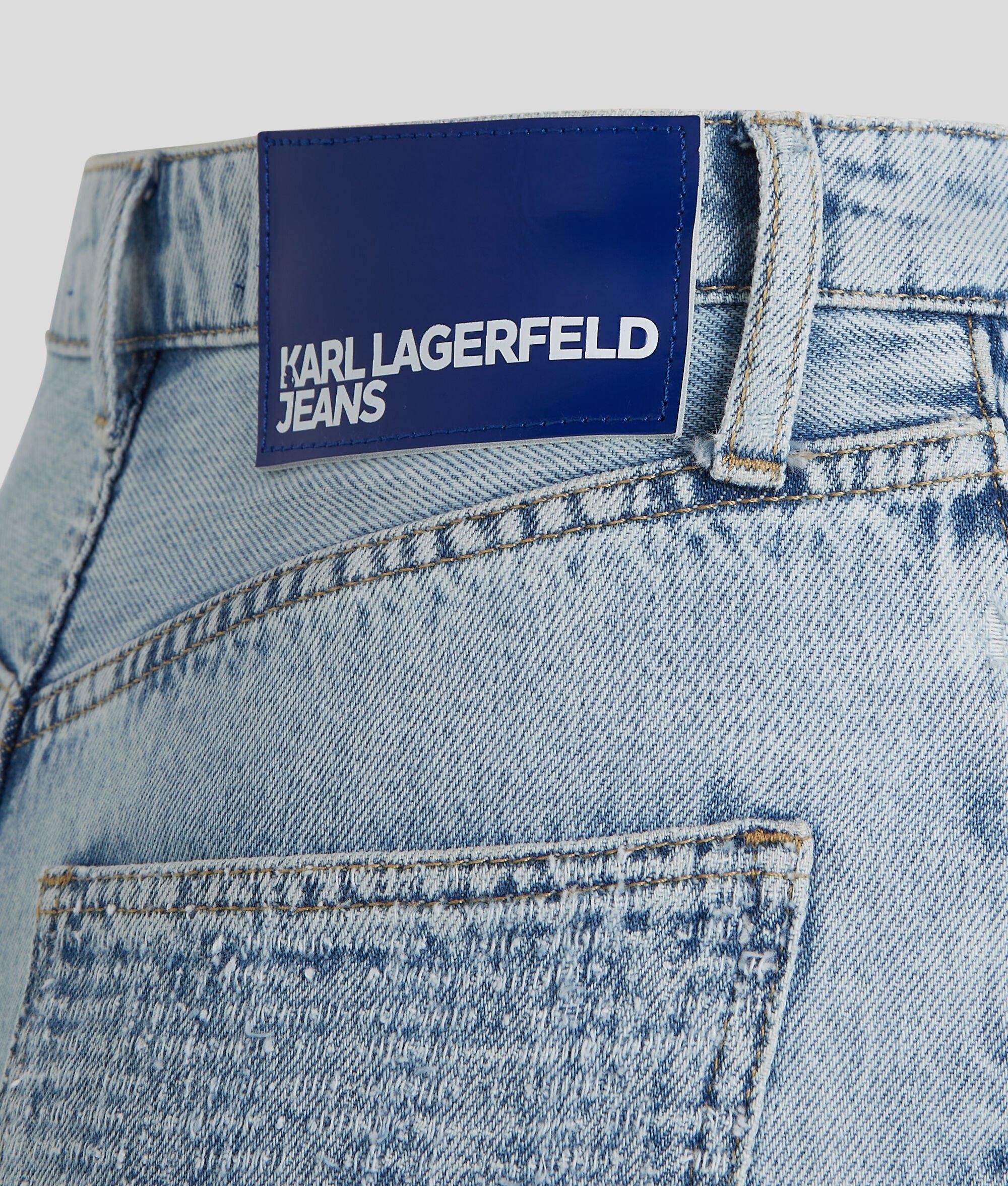 Embrace timeless style with a streetwise twist in these bouclé straight-leg jeans from KARL LAGERFELD JEANS, showcasing an ultra-flattering high waist and refined closure details, accented by a signature leather patch.