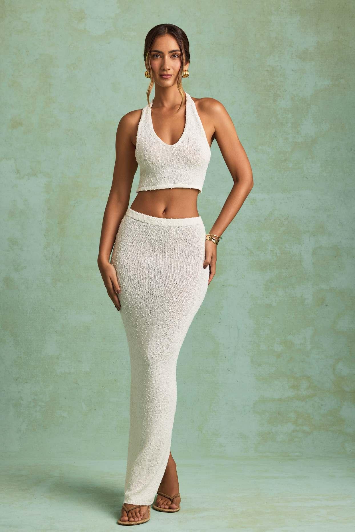 Luxe and lightweight. A warm-weather staple to take you from day to night, the Everly maxi skirt is crafted from lightly textured and subtly sheer bouclé knit fabric. It’s set on a mid-rise elasticated waistband and features a centre-back split for ease of movement. Mid-rise elasticated waistbandLoop-knit textureCentre back split Pull-on designBodycon silhouetteWe recommend styling with our Intimates collection for enhanced coverageMaxi length, SNP to hem approx. 150cm based on a size SProduct code: 14328