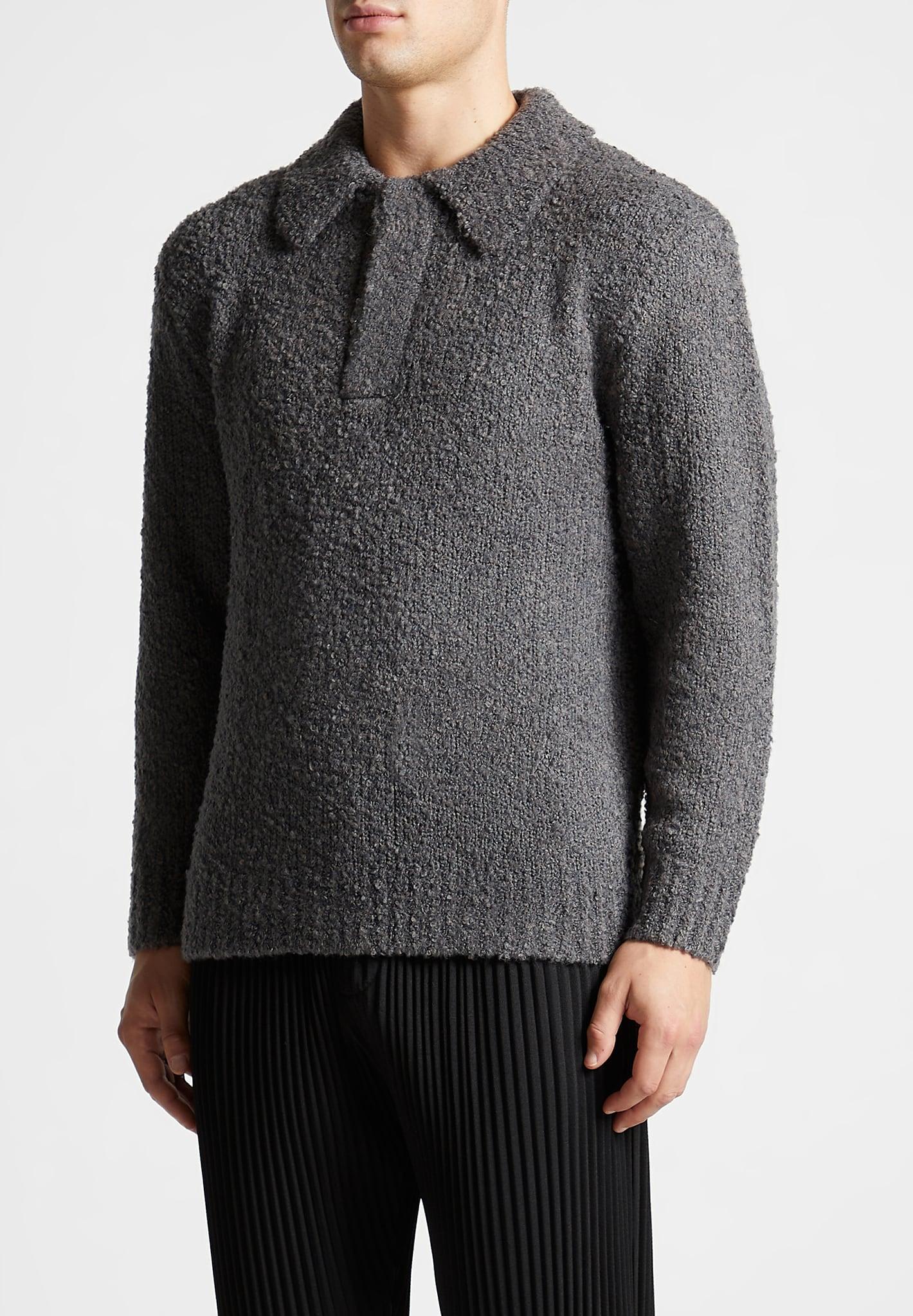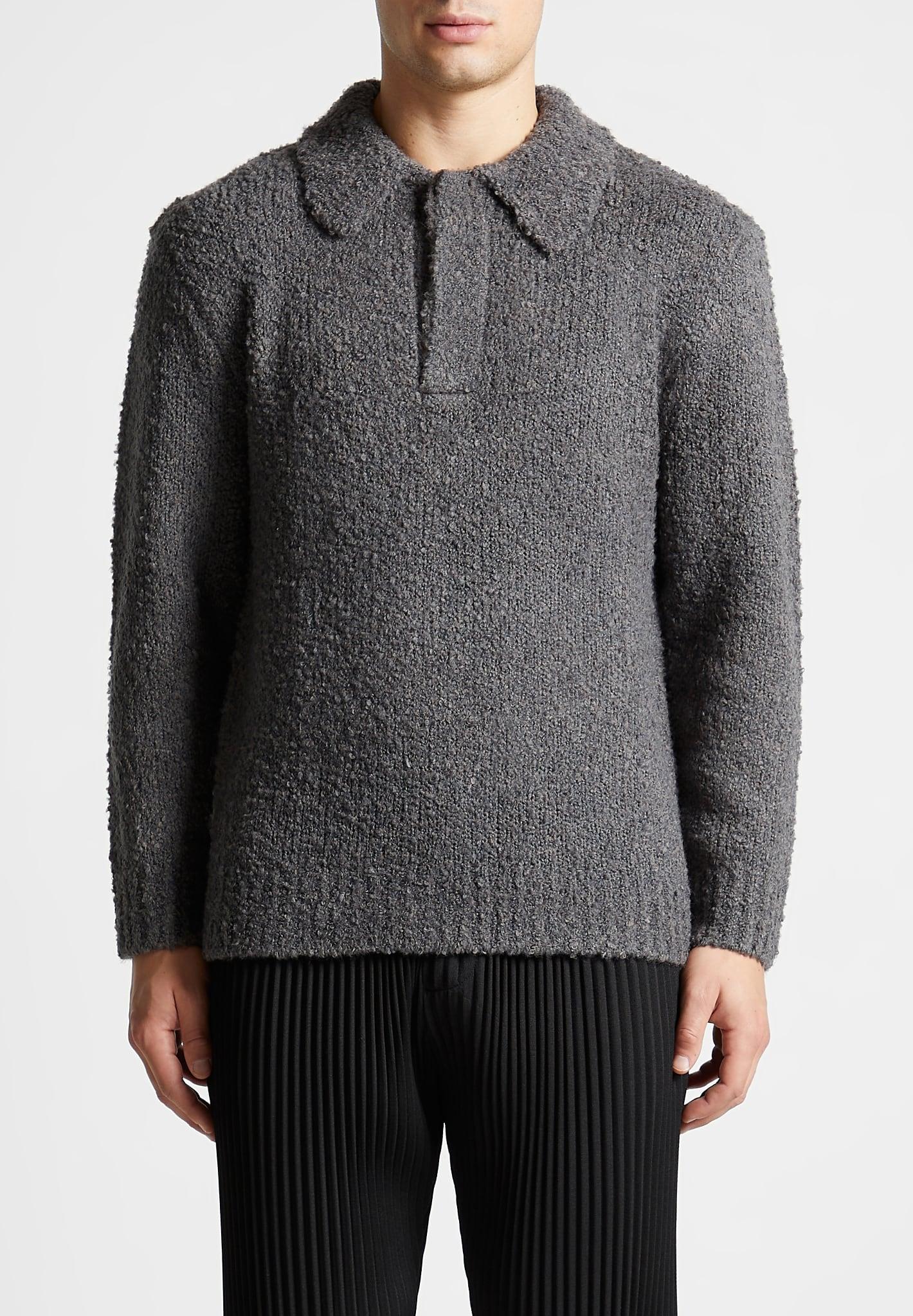 This Boucle Knit Polo Jumper is the perfect for any occasion. Its classic collar and concealed buttons provide a timeless look, while the pullover style offers comfort and convenience. An effortless way to stay warm all season long. Polo Jumper Silhouette Regular Fit Concealed Buttons Classic Collar Boucle Knit Fabric Silver Manière De Voir Eiffel Plaque 100% NylonAlways check the care label for wash instructions.
