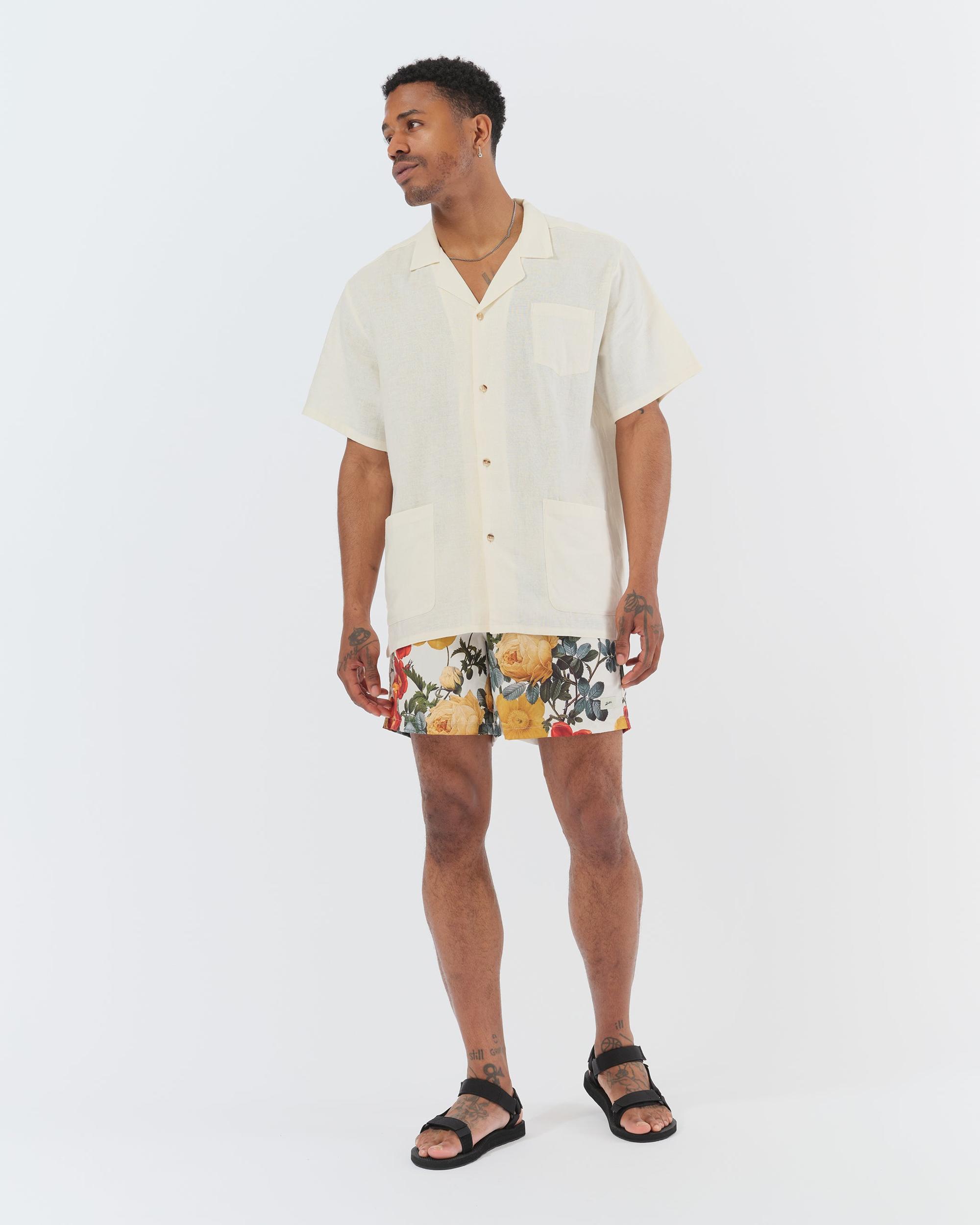 Giving a bouquet is known as a gift of many meanings, but have you ever tried wearing one? Straying away from our typical Hawaiian tropical floral patterns, the Bouquet pattern provides its wearer with a traditional and timeless look to add to their wardrobe. With yellow poppies and roses, symbolizing regeneration and community, this bouquet strays away from romance while still being the desirable summer staple.