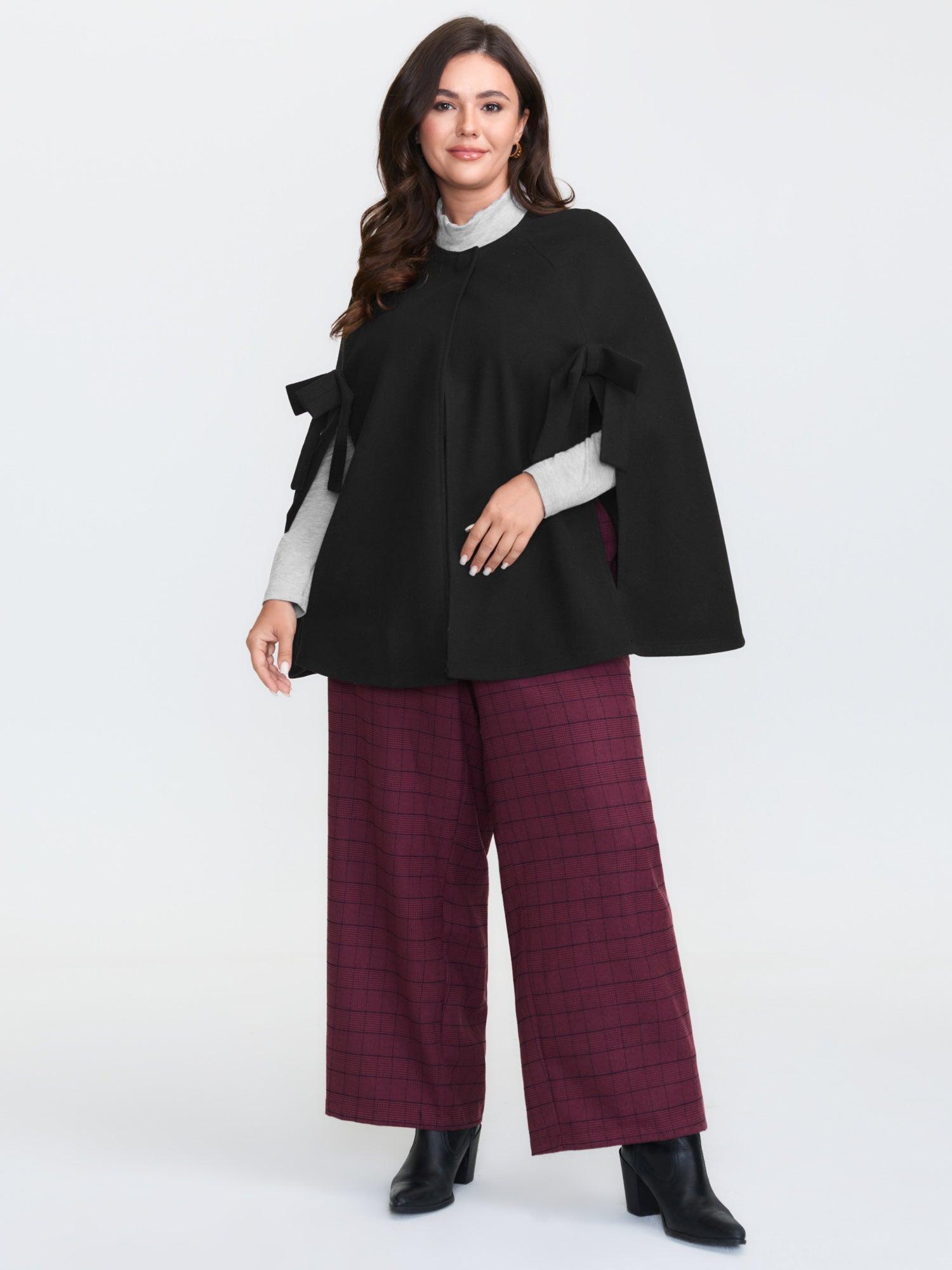Shop Bowknot Cape Style Split Coat now and redefine your style with confidence at BloomChic. Tailored for mid and plus-size women. This trendy Outerwear Women, sizes 10-30. Color:Black;Style:Retro;Prints:Non;Pocket:No-pocket;Belt:No-belt;Closure Type:Hook and eye;Lining:No-lining