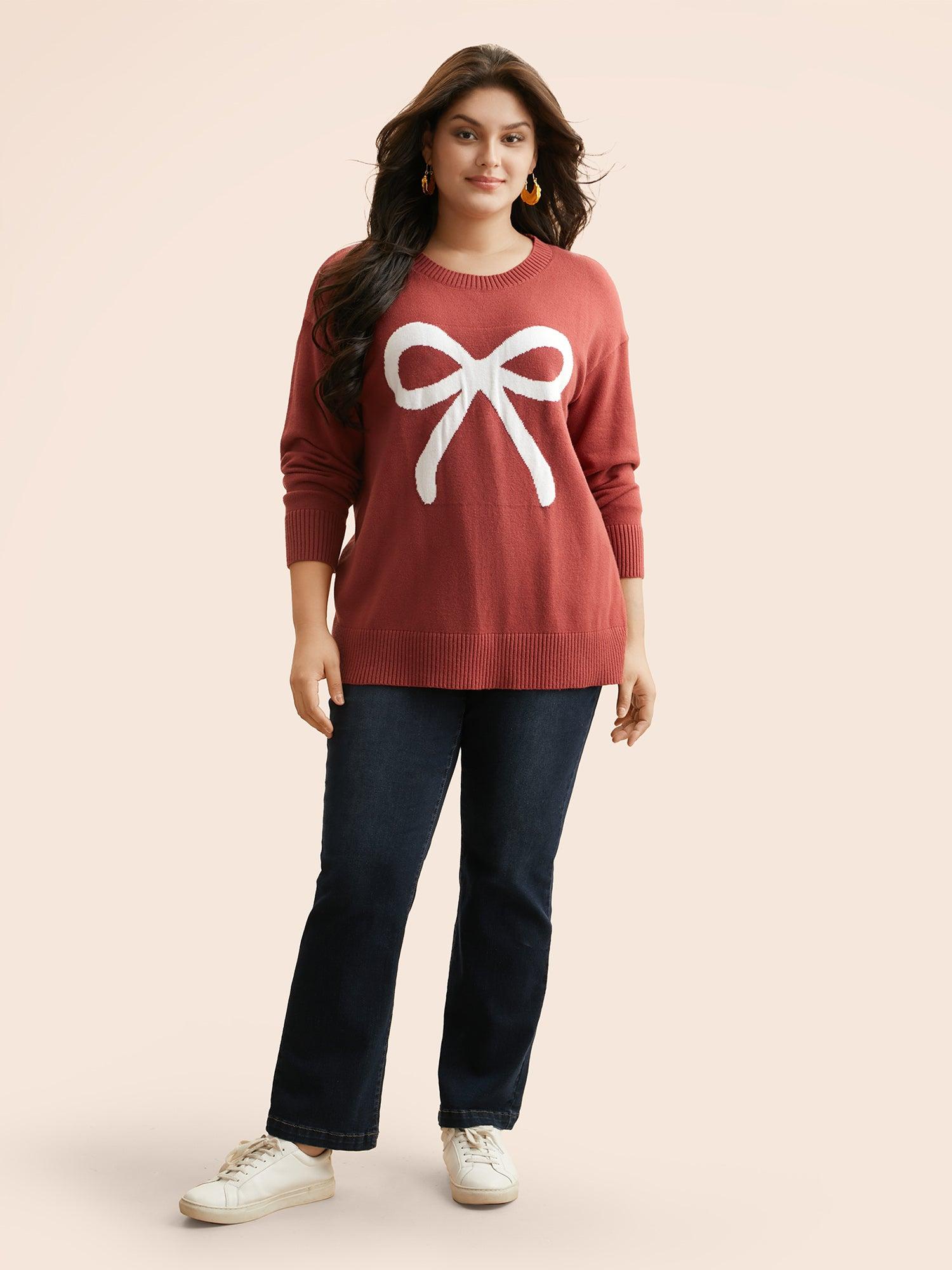 Shop Bowknot Jacquard Drop Shoulder Pullover now and redefine your style with confidence at BloomChic. Tailored for mid and plus-size women. This trendy Sweaters Cardigans Women, sizes 10-30. Season:Winter;Color:DustyPink;Style:Casual;Neckline:Round Neck;Sleeve Type:Regular Sleeve;Prints:Figurative print;Details:Non;Pocket:No-pocket;Belt:No-belt;Closure Type:Non