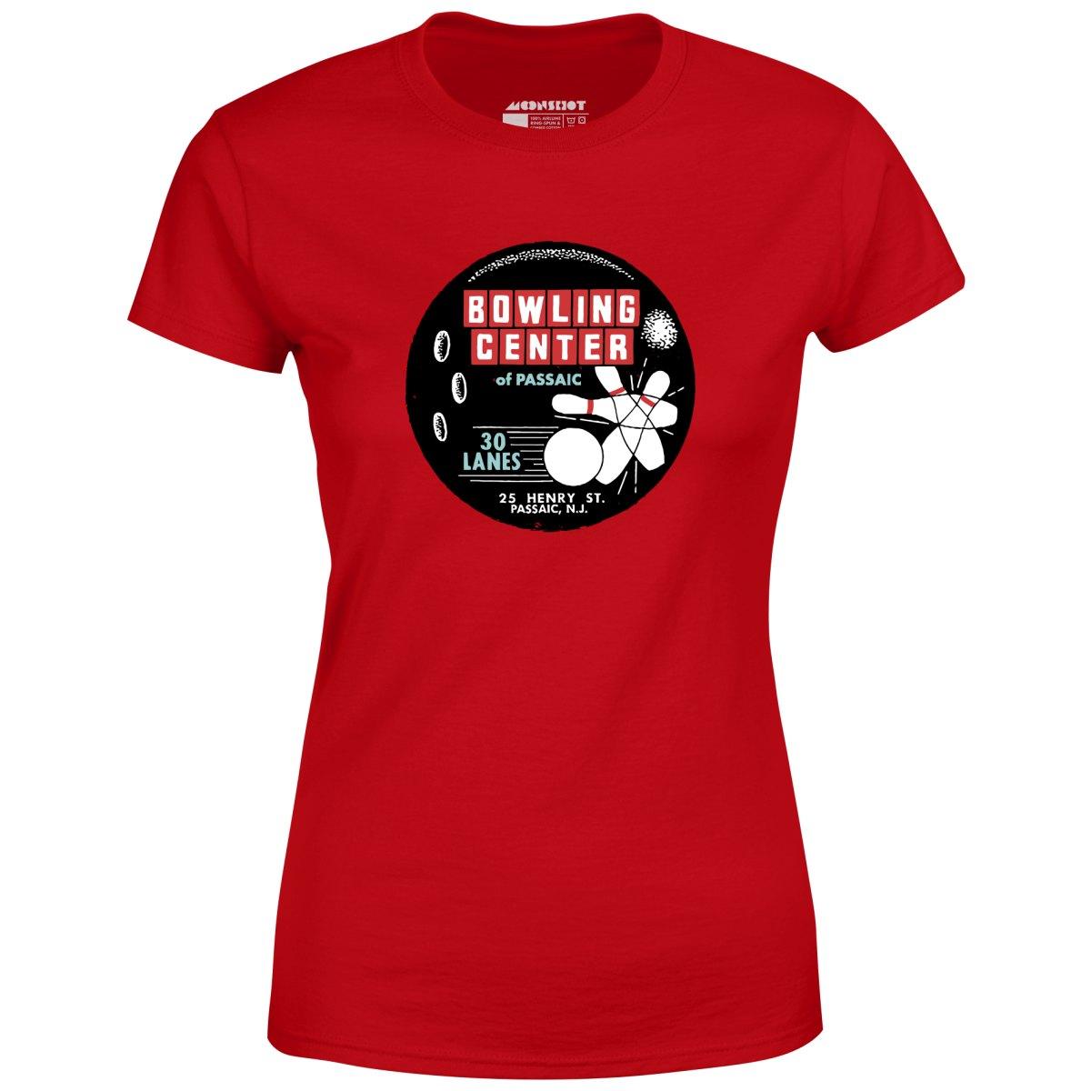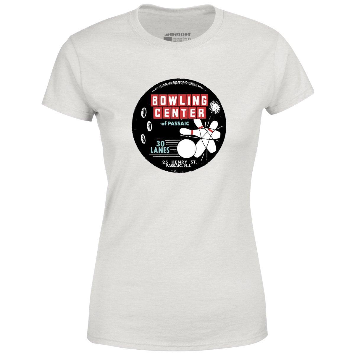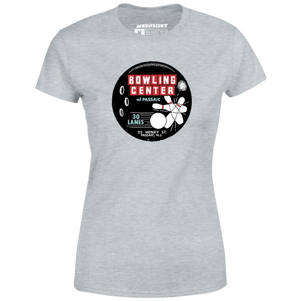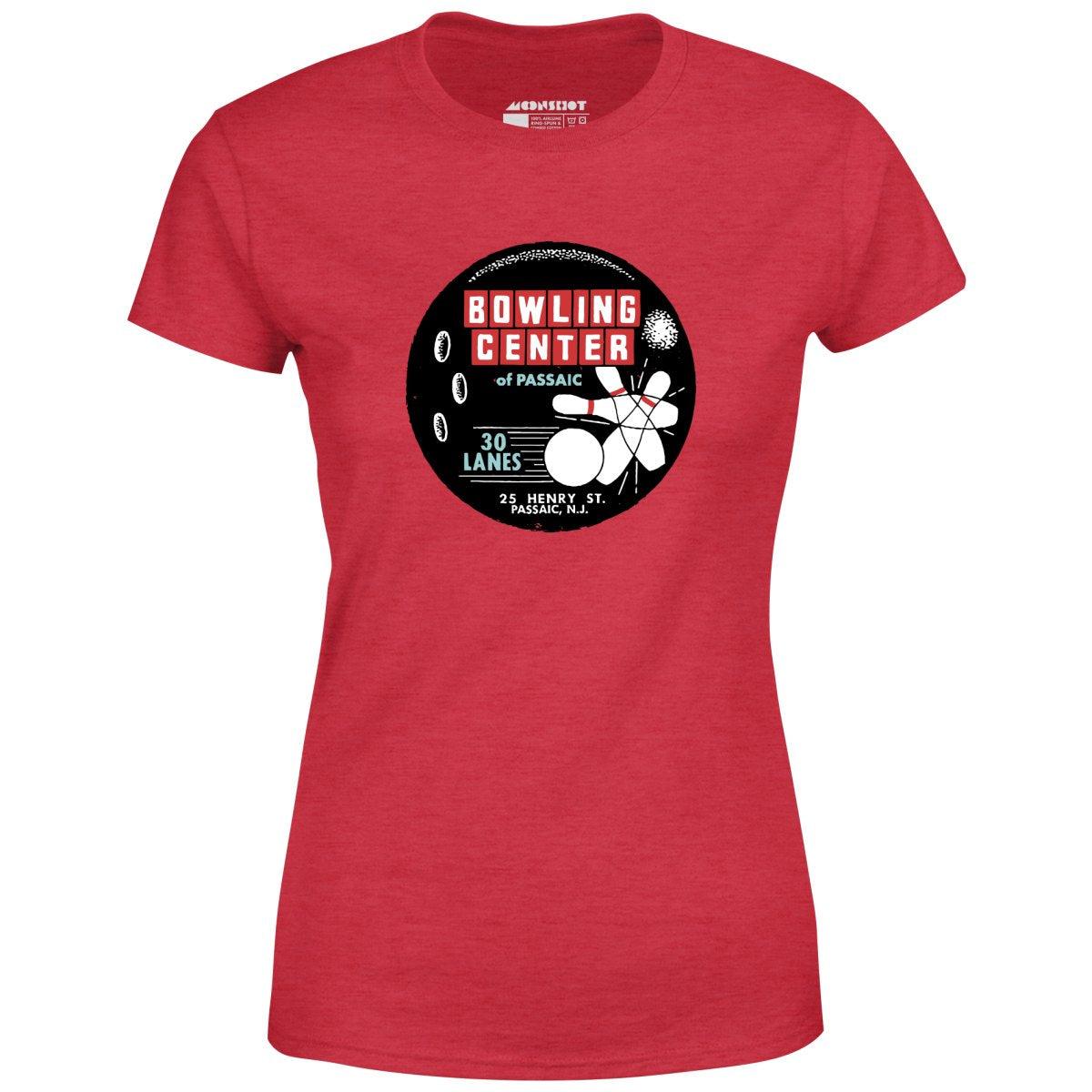 A vintage bowling alley T-Shirt design inspired by the Bowling Center of Passaic. This vintage 30 lane bowling alley was located in Passaic New Jersey. This design is part of our retro bowling alley collection featuring the vintage defunct bowling alleys of yesteryear. Memorialized on high quality apparel. Printed on our super soft 100% ringspun & combed cotton women's T-Shirt. Or upgrade to our Luxury 52/48 cotton/poly vintage heather edition for an even softer classic look. We print & ship all of our high quality graphic tees in the USA.