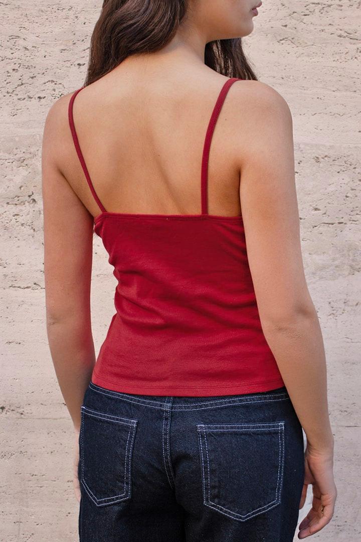 V-neck top, bow detail, sleeveless, short length, slim fit.
