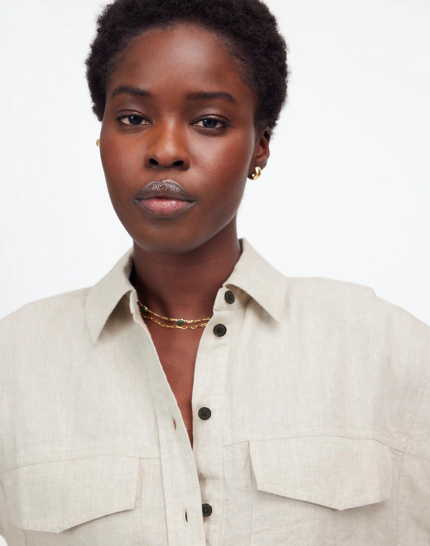 This fully-lined shirt is crafted from 100 percent linen for an elevated, timeless look. Featuring flap cargo pockets and buttons, it's a versatile essential that combines modern utility with a boxy fit.