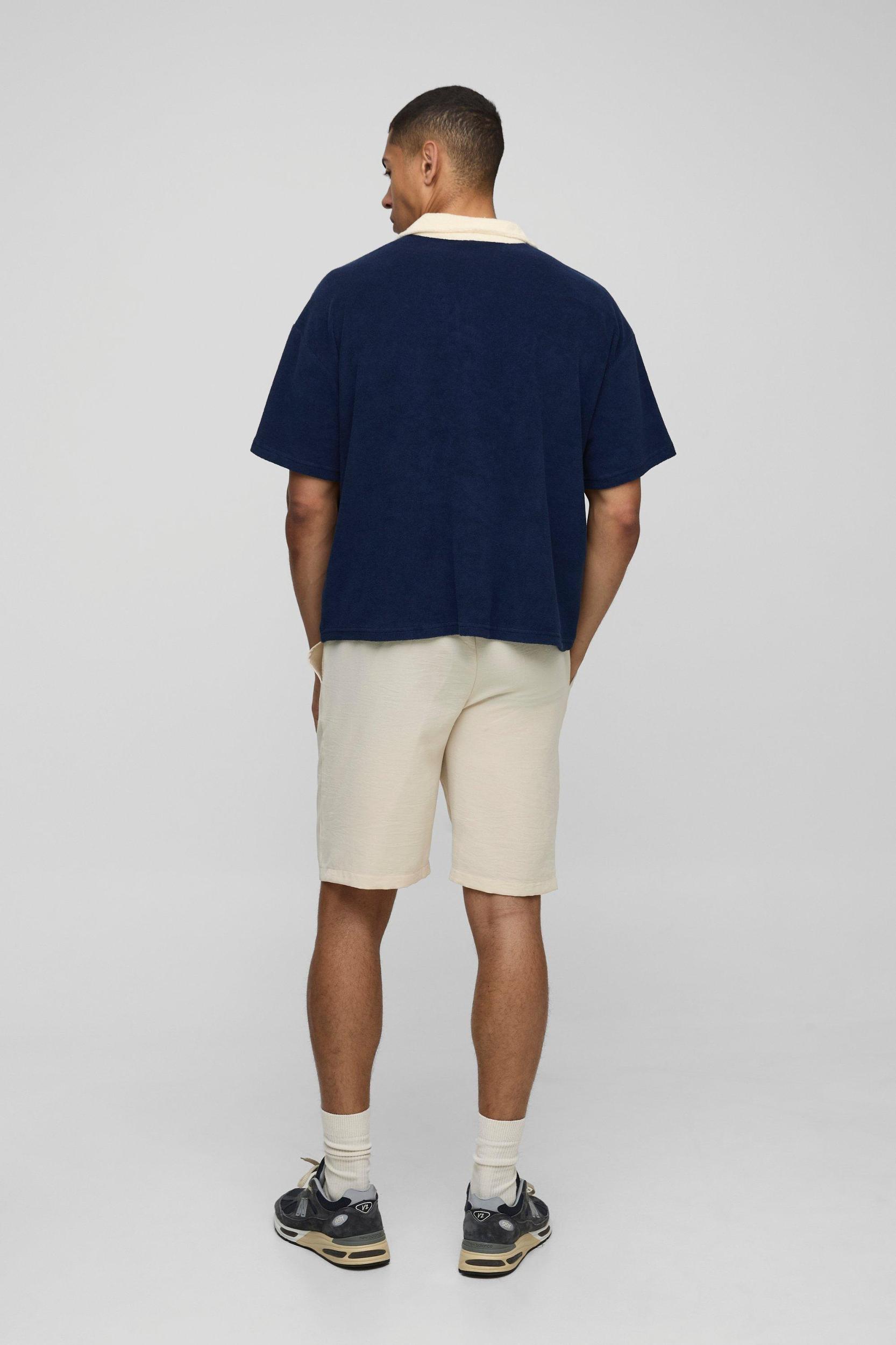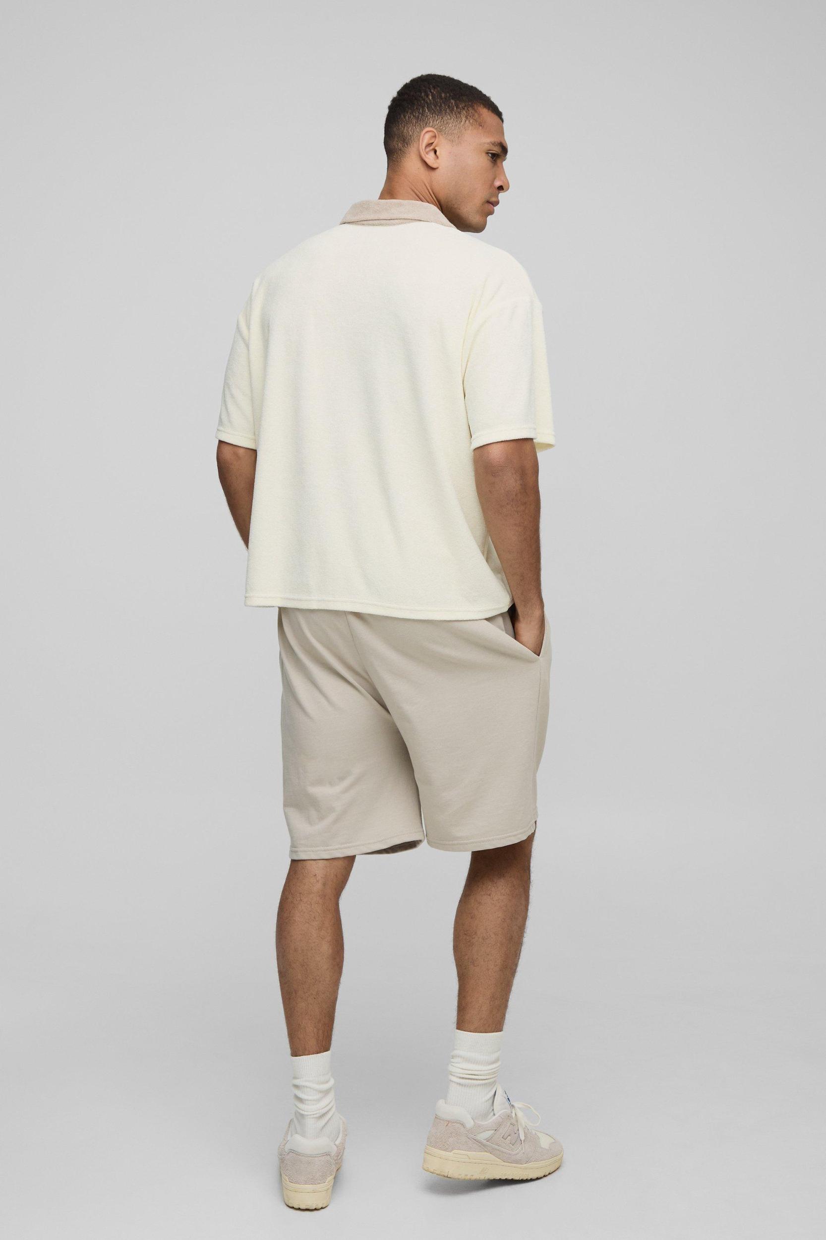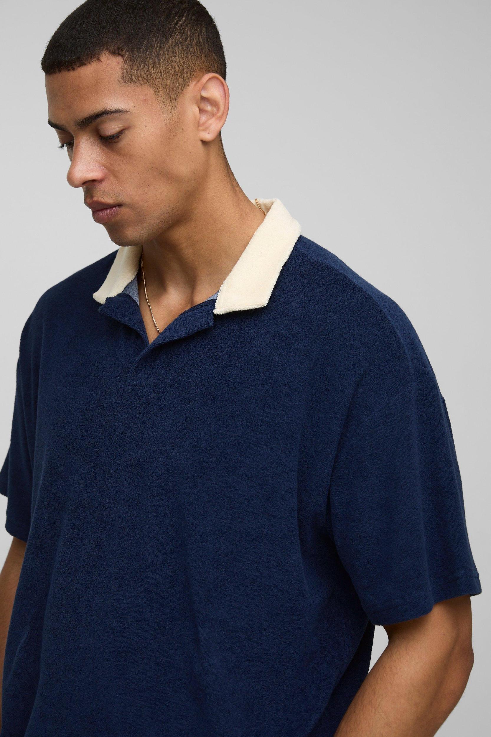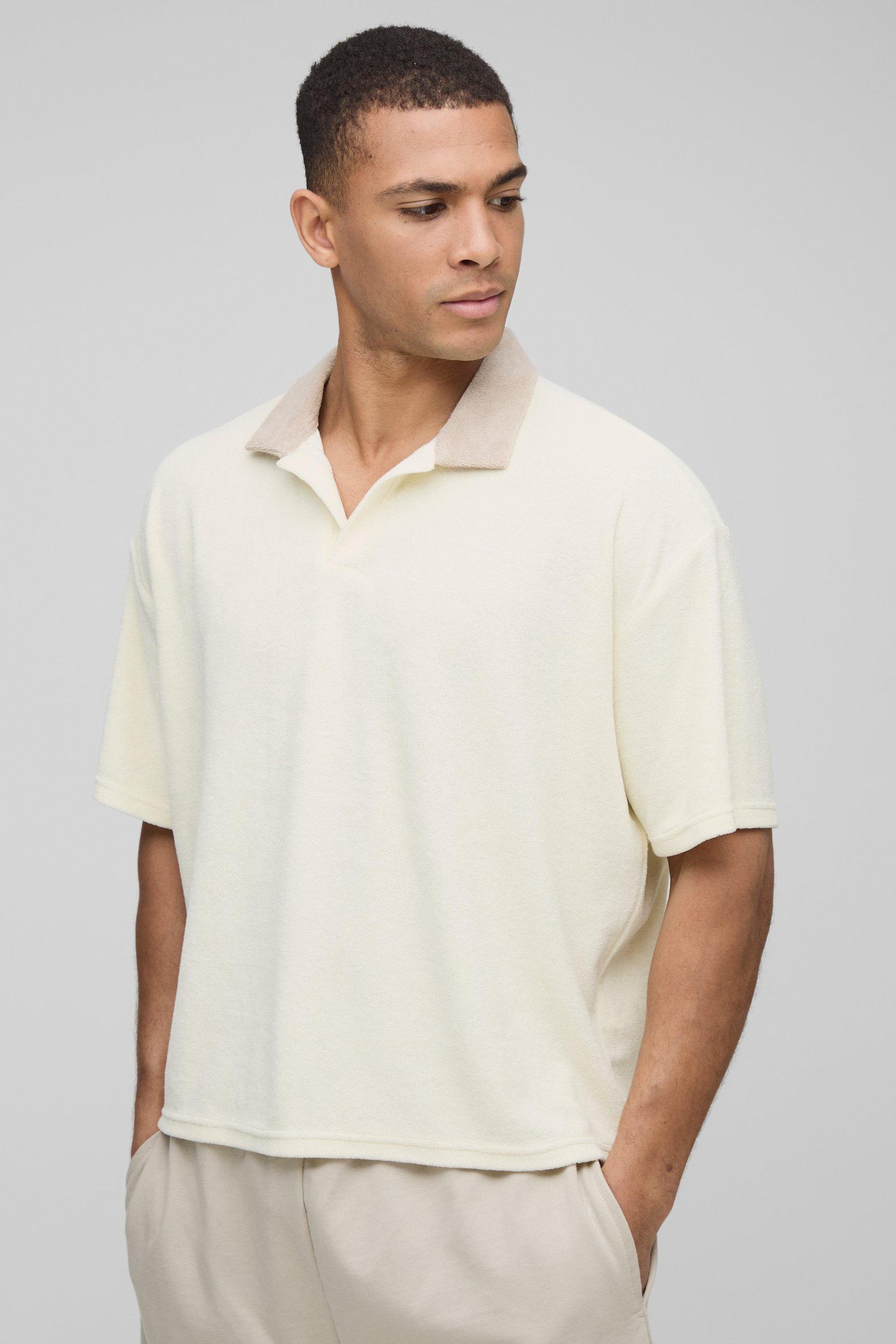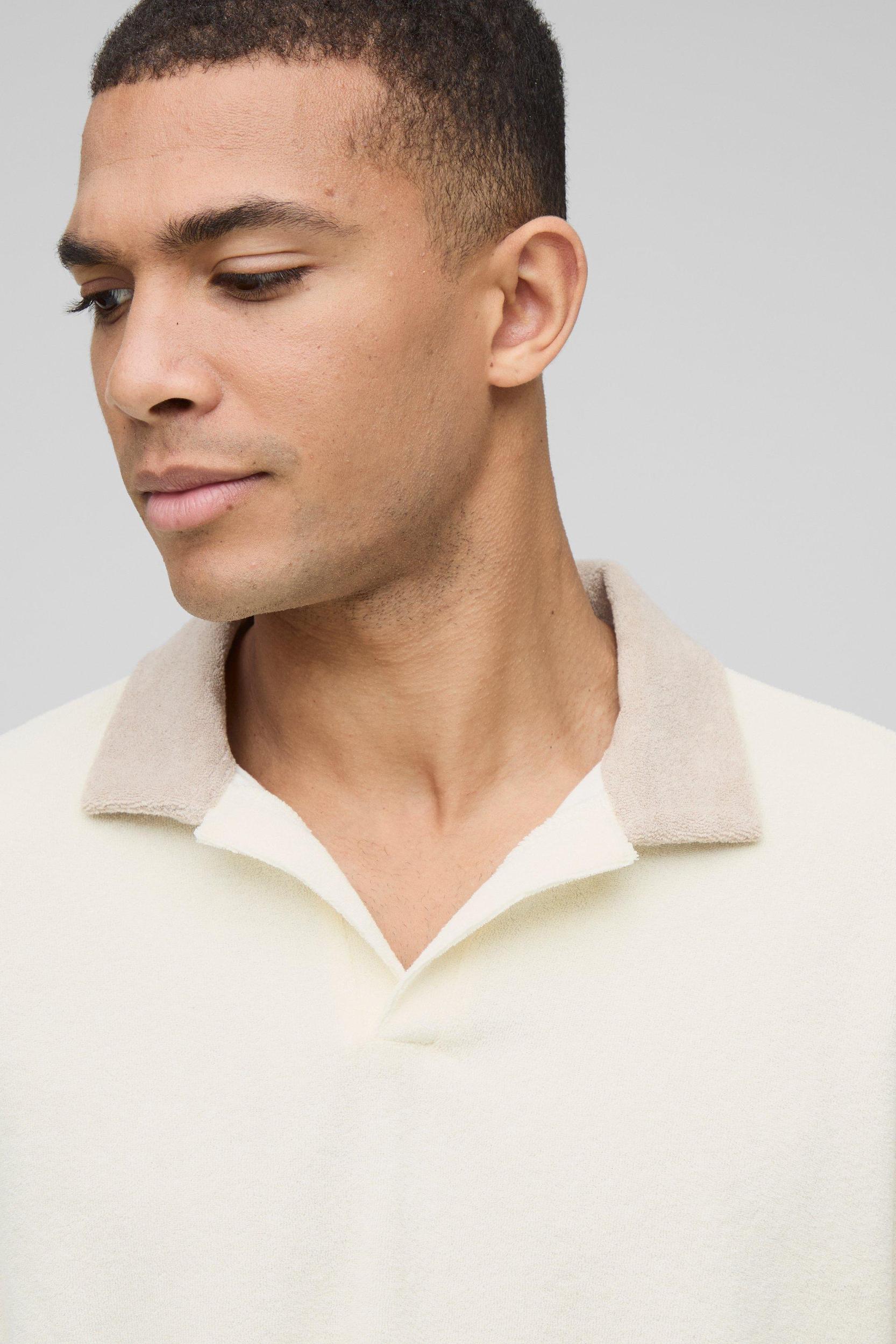 Boxy Contrast Collar Towelling V Neck Polo | boohooMAN USA