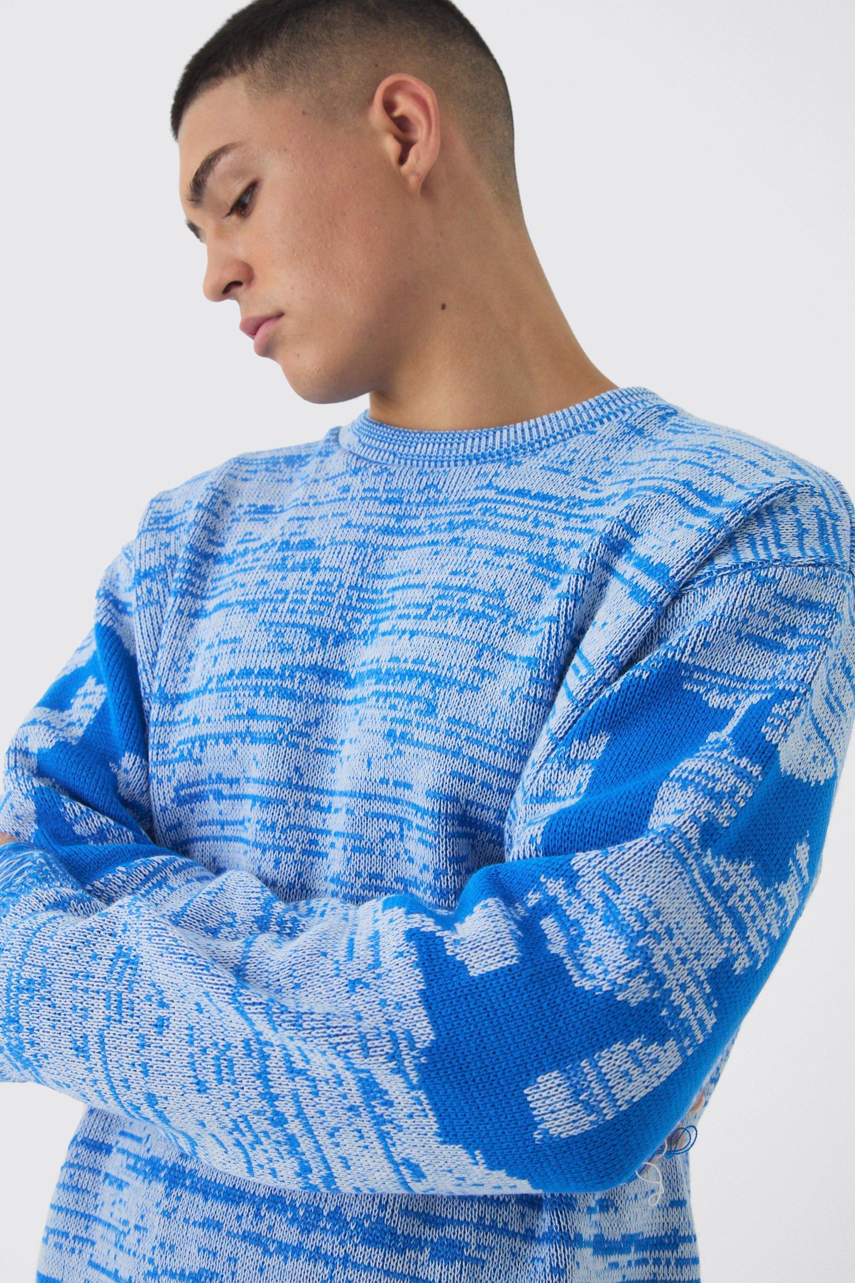 Keep warm while you play it cool with BoohooMAN jumpers and cardigans. If you like a cosy top layer when you're outside hanging with the lads, there's nothing like a new jumper with a fresh lining of soft fleece. On the other hand, if you've been hitting the upper body circuits lately you might prefer to show off your hard work with a muscle fit rib knit. There are plenty of style options when it comes to your finishing layer. Get instant street cred by combining a stylish knitted jumper and cargos, or wear a slim fit cardy and tapered trousers for instant office suave. From crew necks to turtlenecks, our men's jumpers will keep you warm while you're busy being sizzling hot.Style: JumperDesign: JacquardFabric: AcrylicLength: RegularNeckline: CrewSleeve Length: Long Sleeve