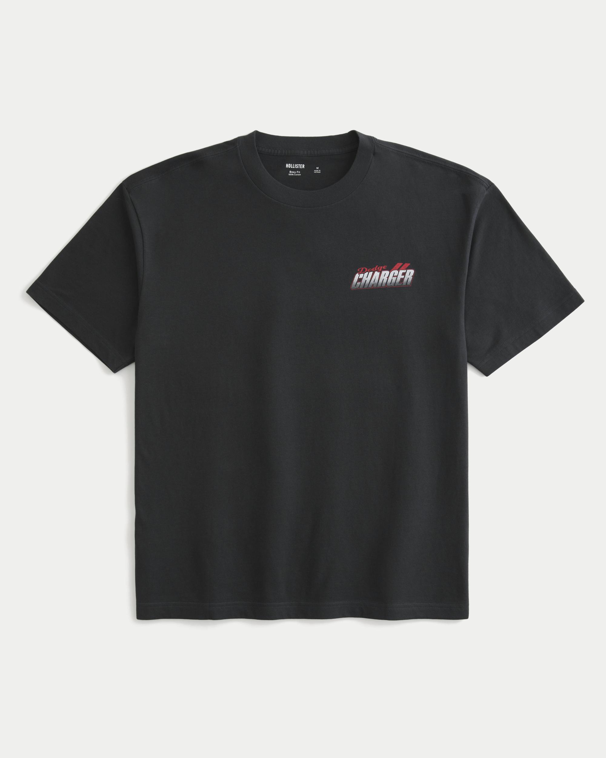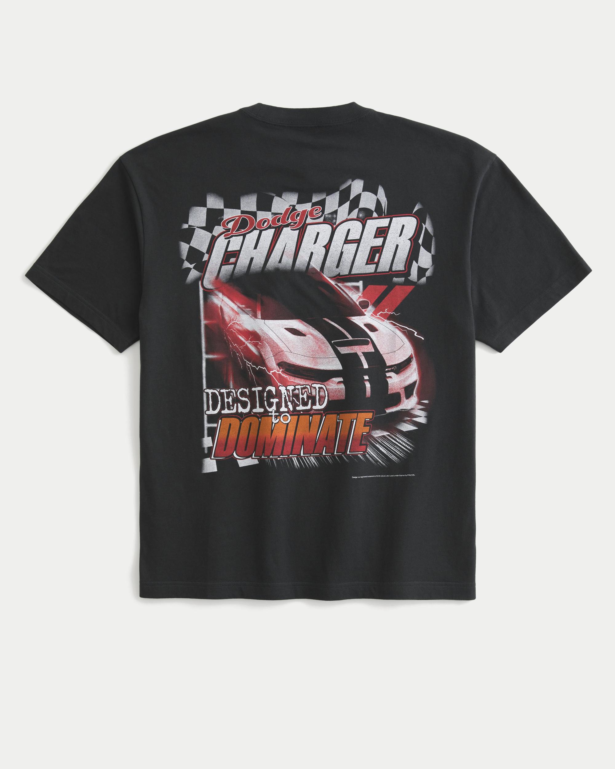 A 100% cotton tee featuring official licensed Dodge Charger print graphics at the left chest and back. Crew neckline, short sleeves. Boxy Fit.