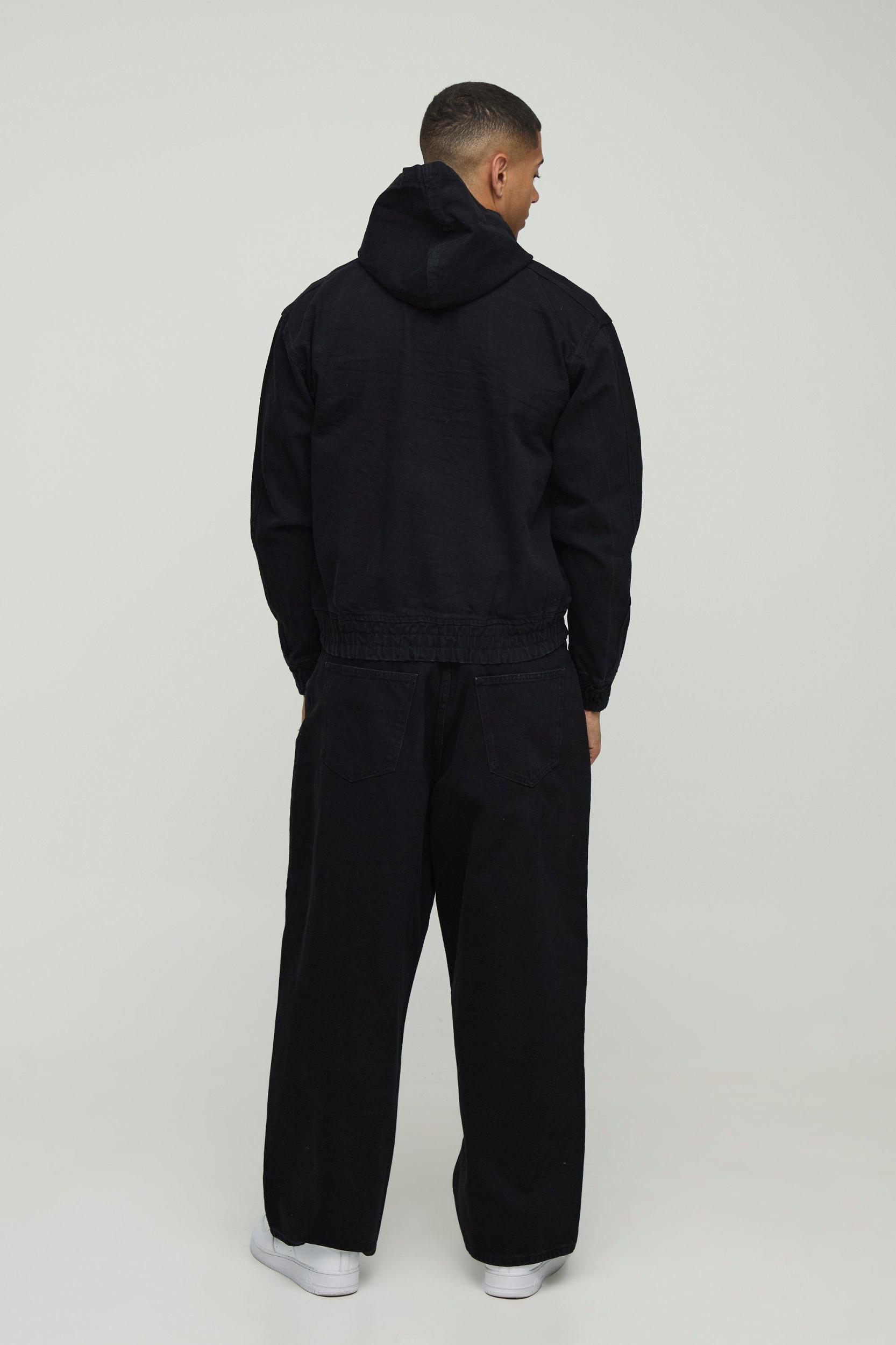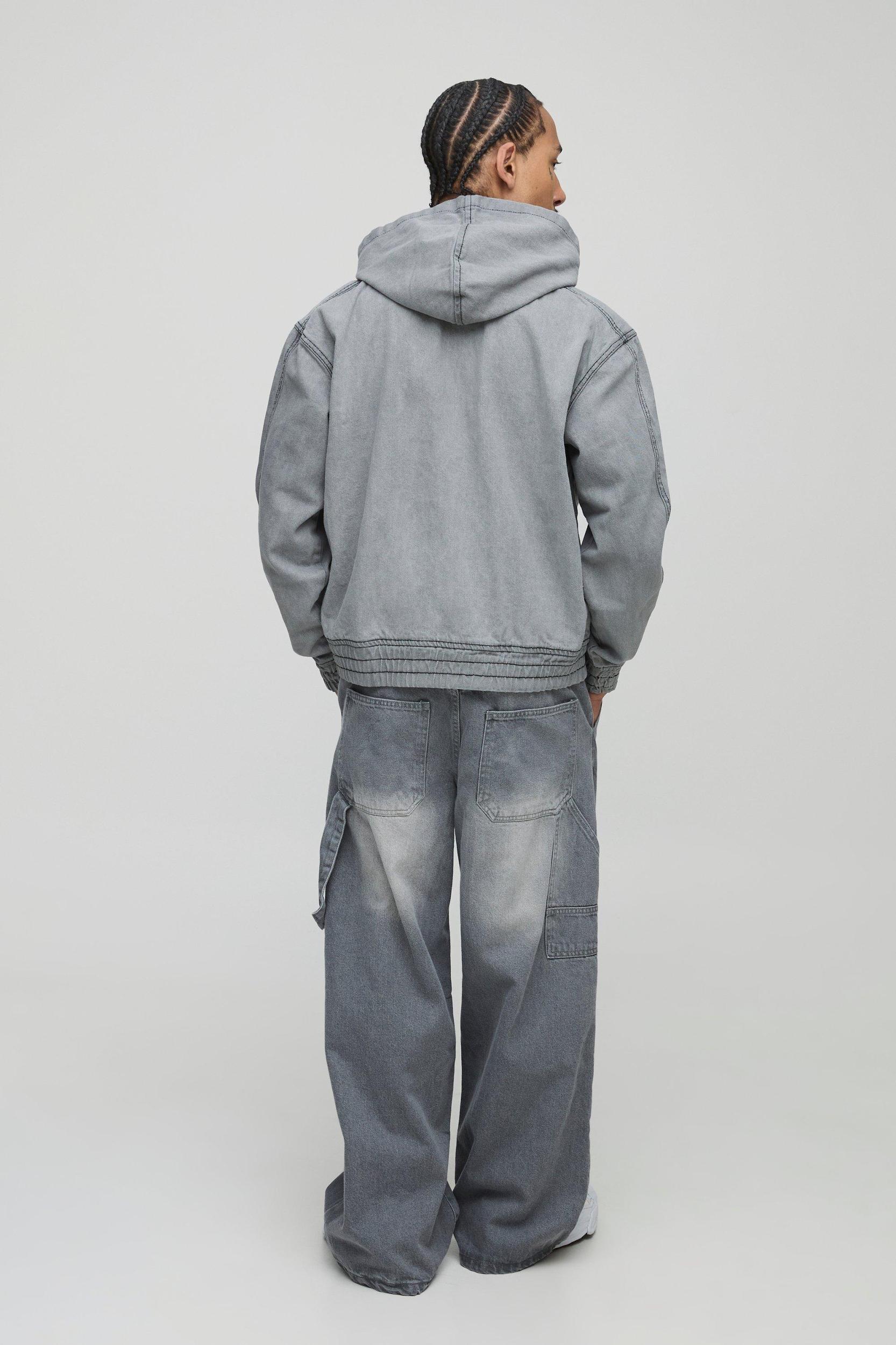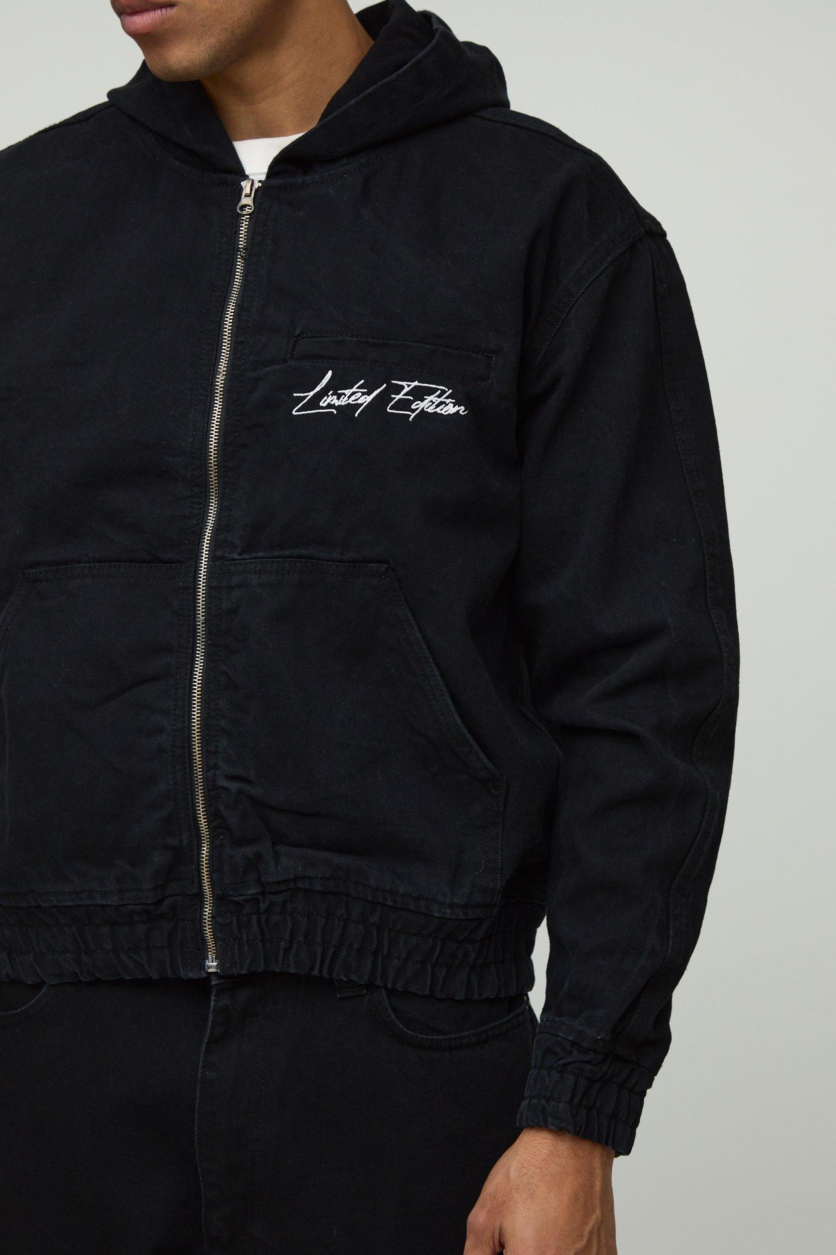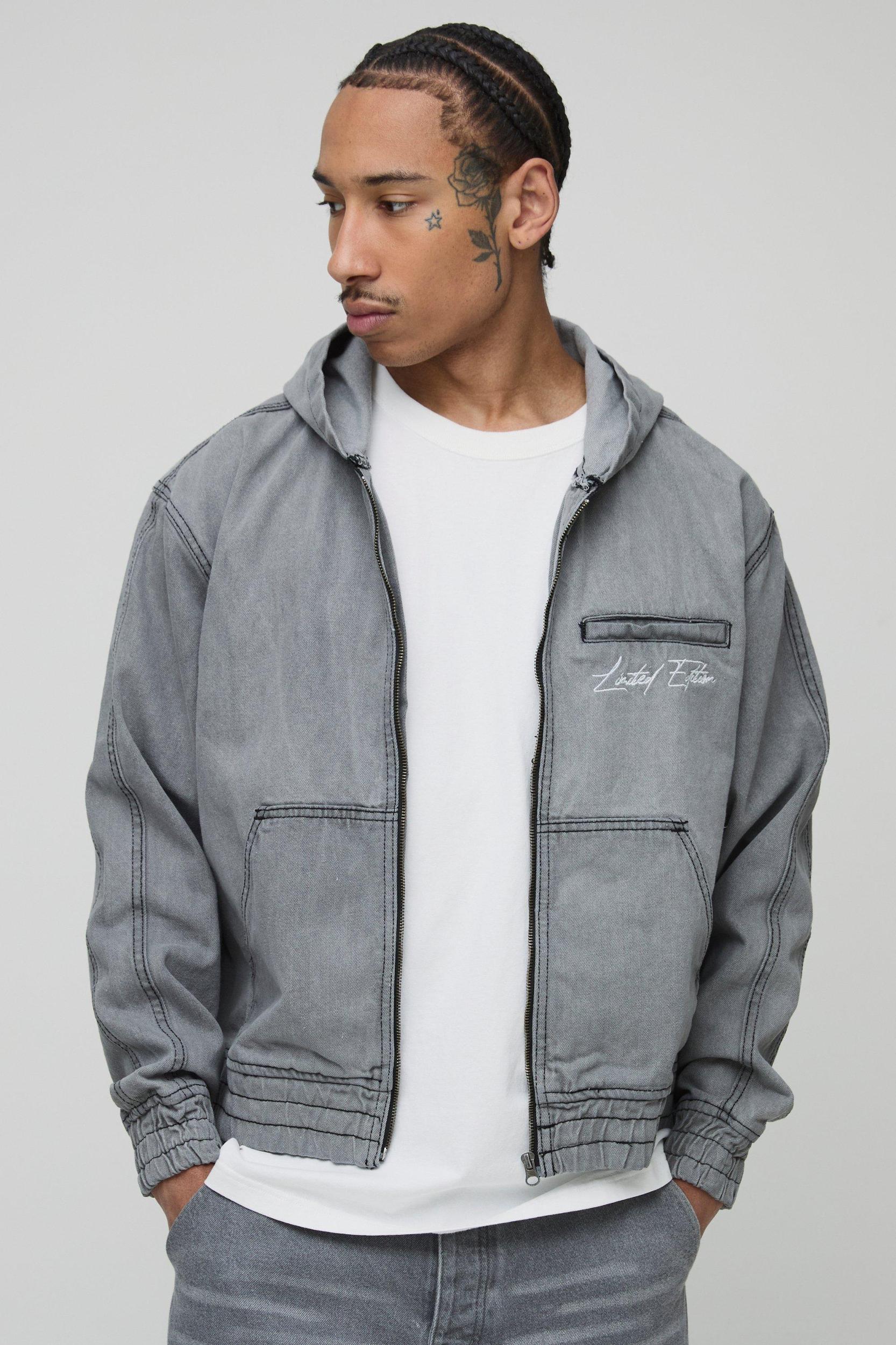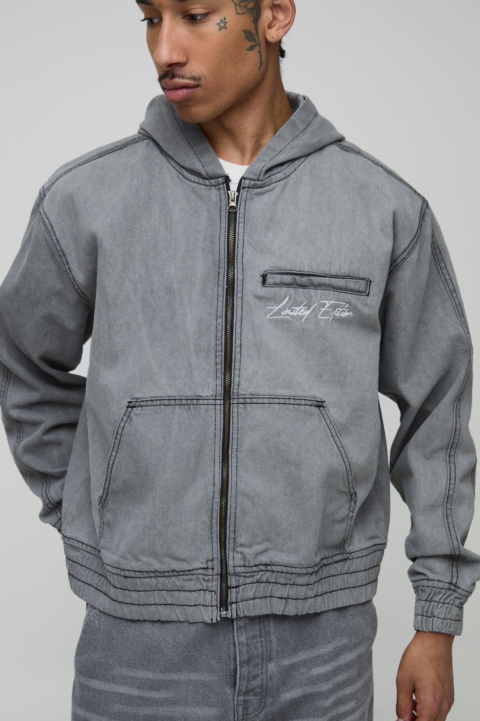 Boxy Embroidery Denim Hoodie | boohooMAN USA