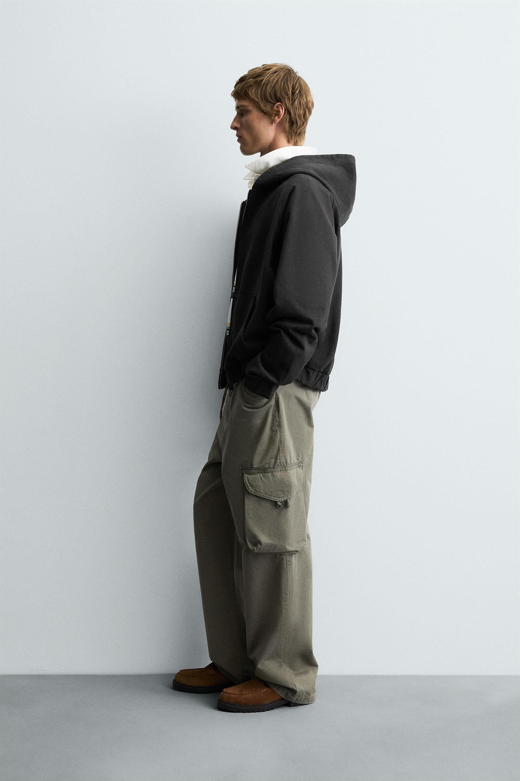Boxy fit hoodie sweatshirt made of compact cotton fabric with a looped lining. Hooded collar and long sleeves. Front kangaroo pockets. Elastic trim. Front zip closure.