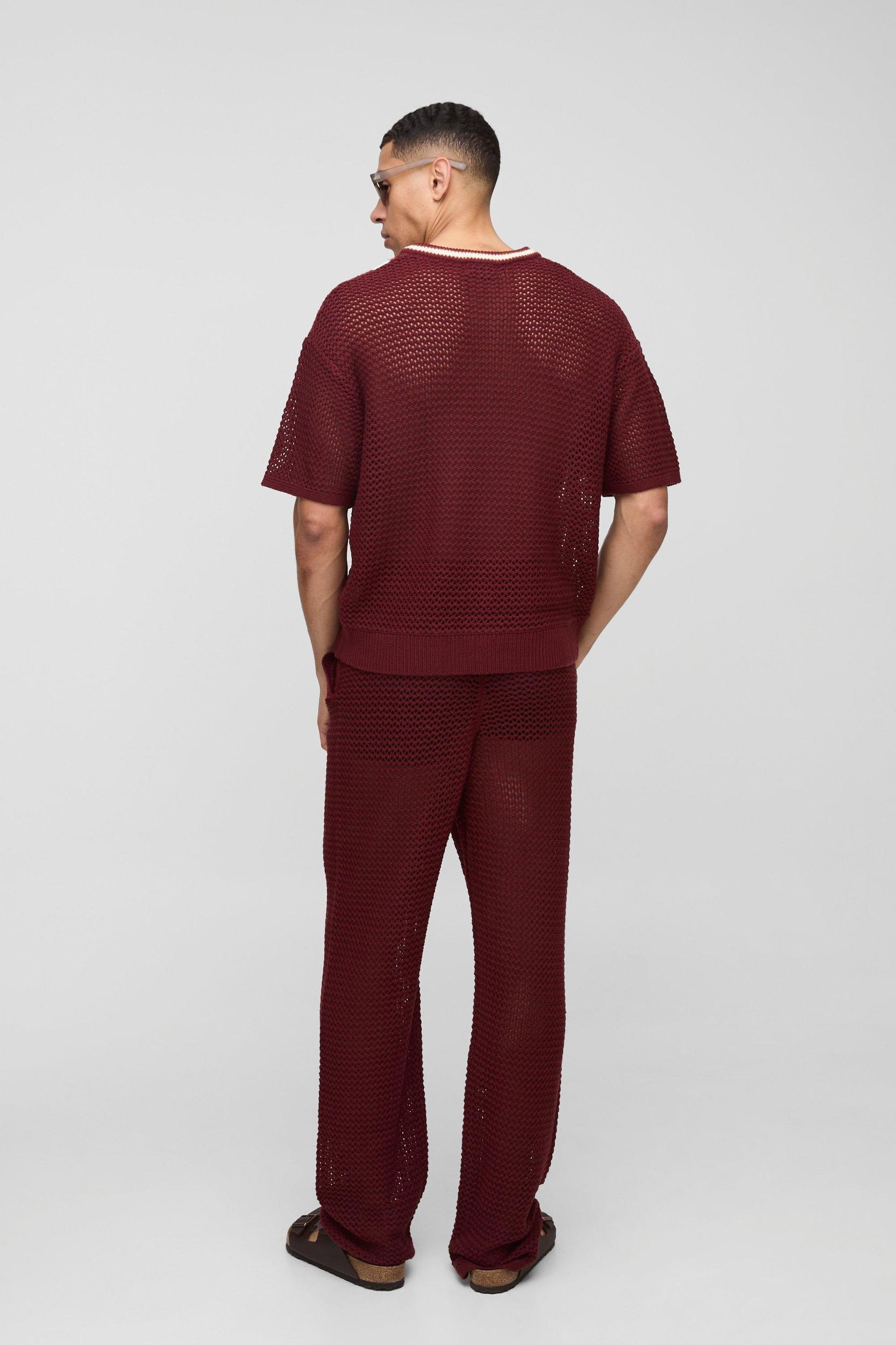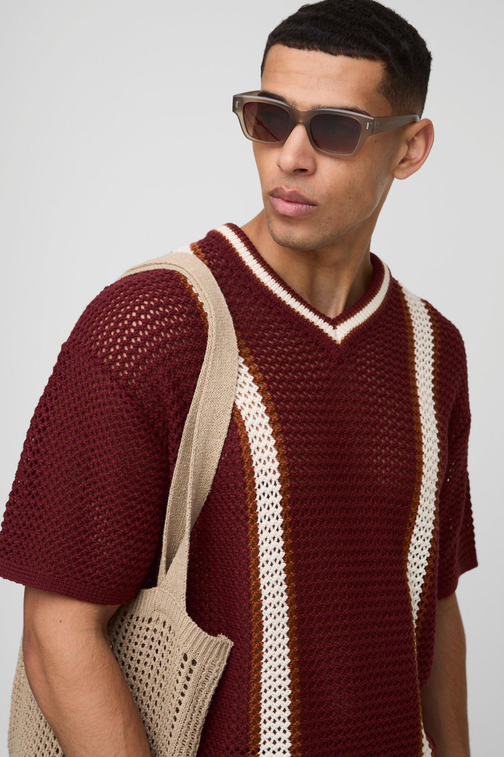 Boxy Fit Open Stitch V Neck Striped Knitted T-Shirt | boohooMAN USA