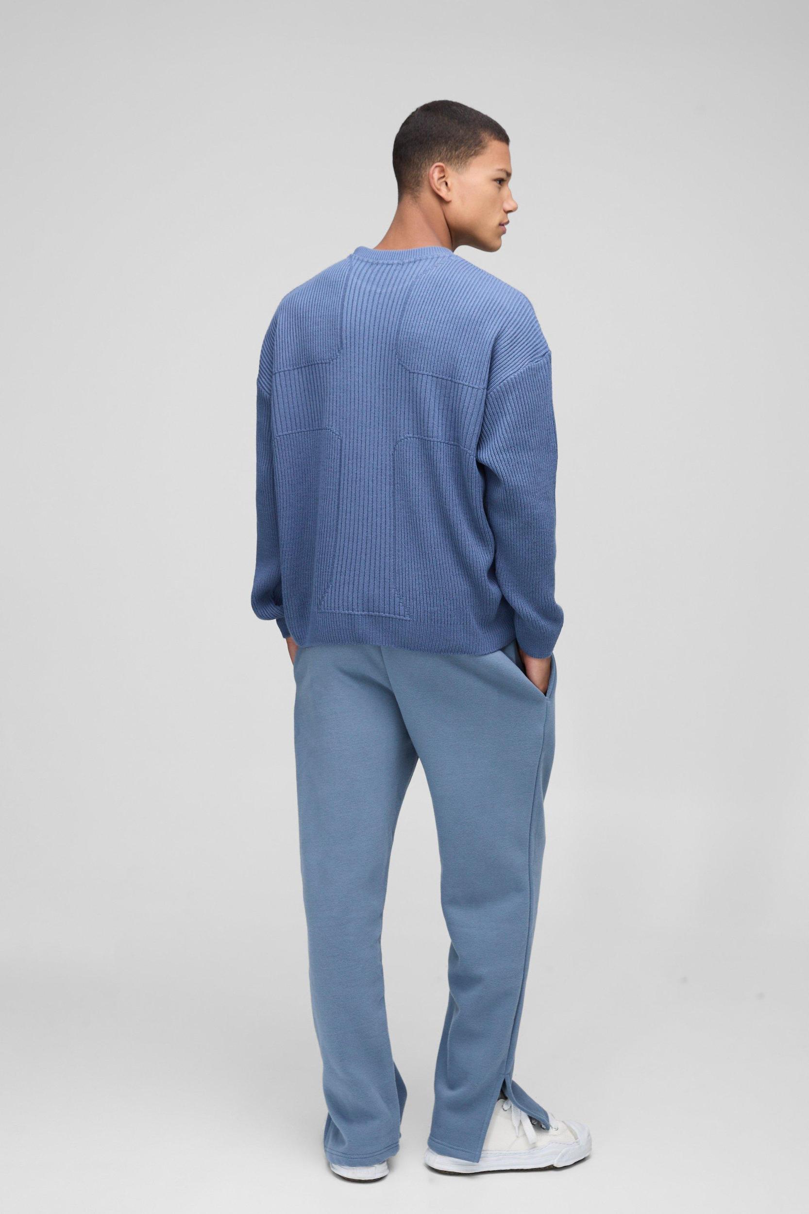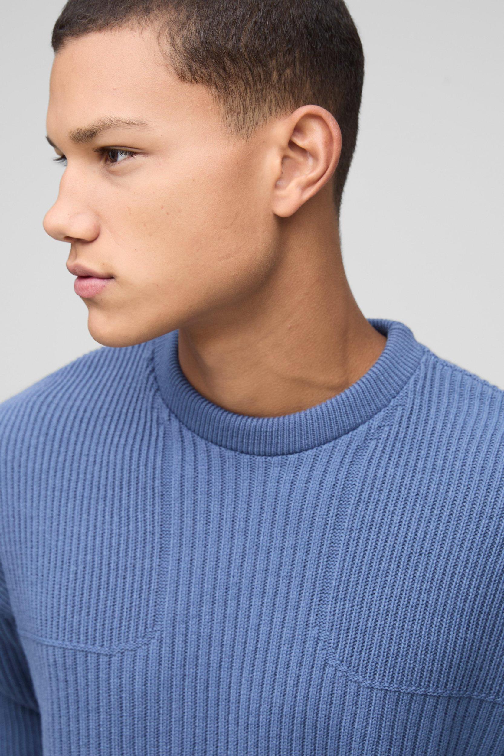 Boxy Fit Ribbed Cross Crew Neck Knitted Sweater | boohooMAN USA