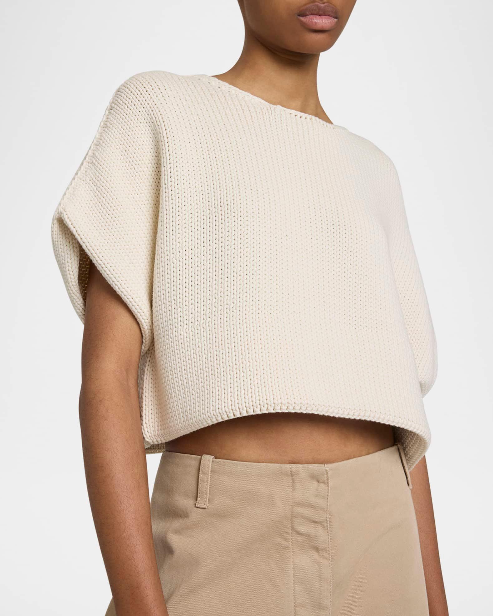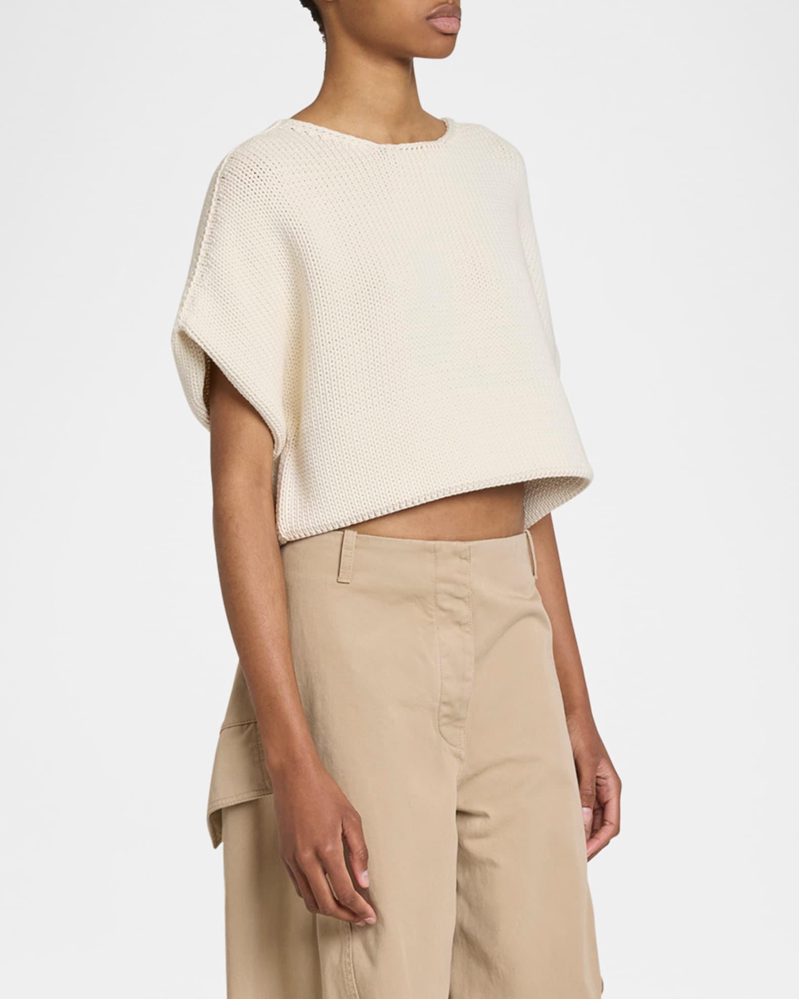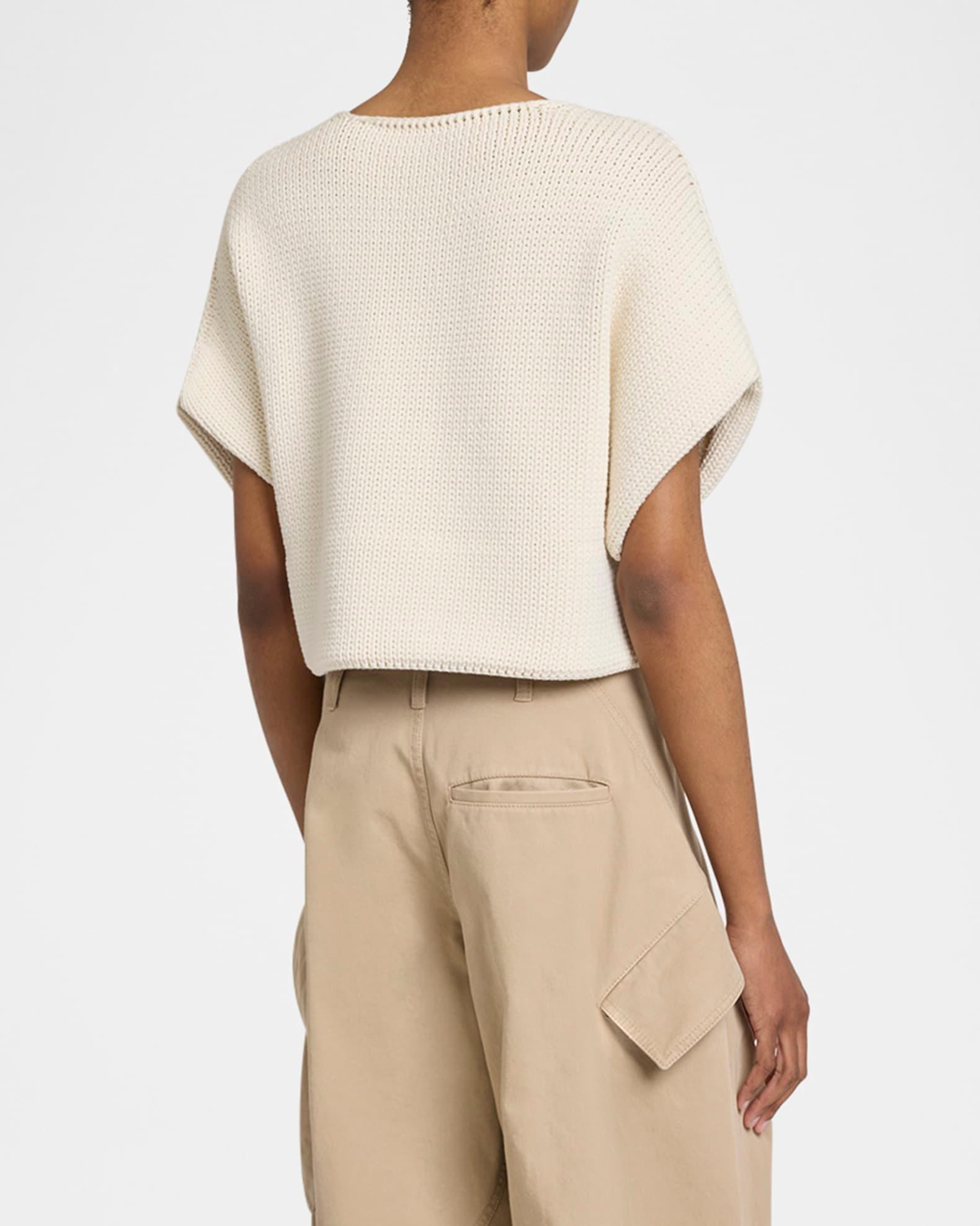ALAIA knit crop top Crew neckline Short sleeves Boxy fit Pullover style Cotton/nylon/polyamide Made in Italy