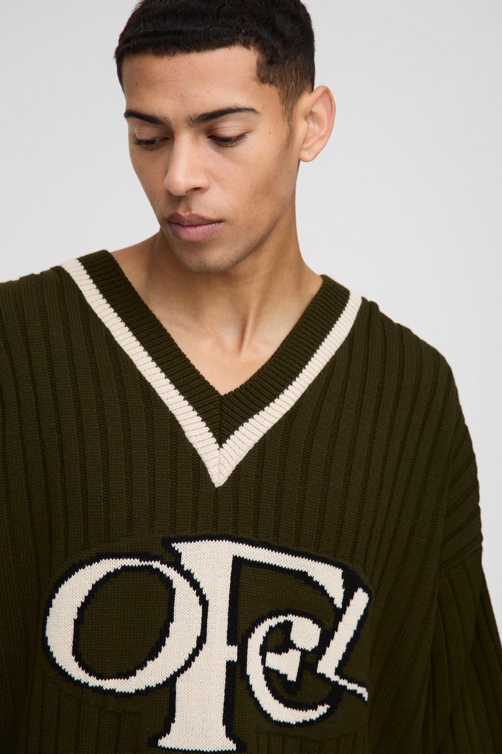 Boxy Ofcl V Neck Knitted Sweater | boohooMAN USA