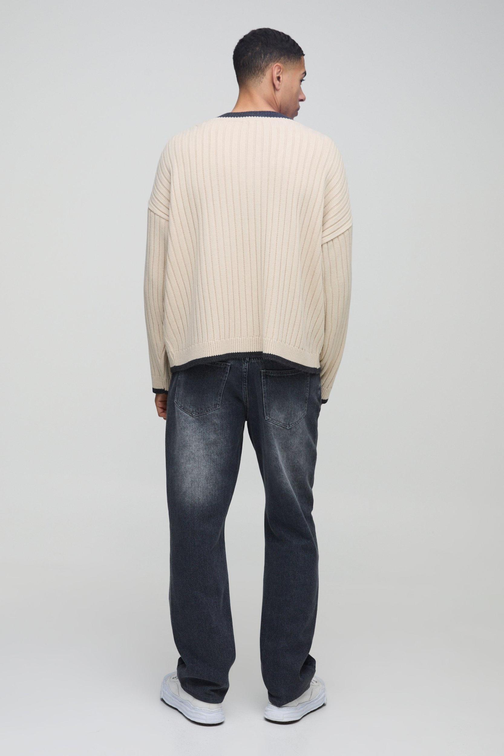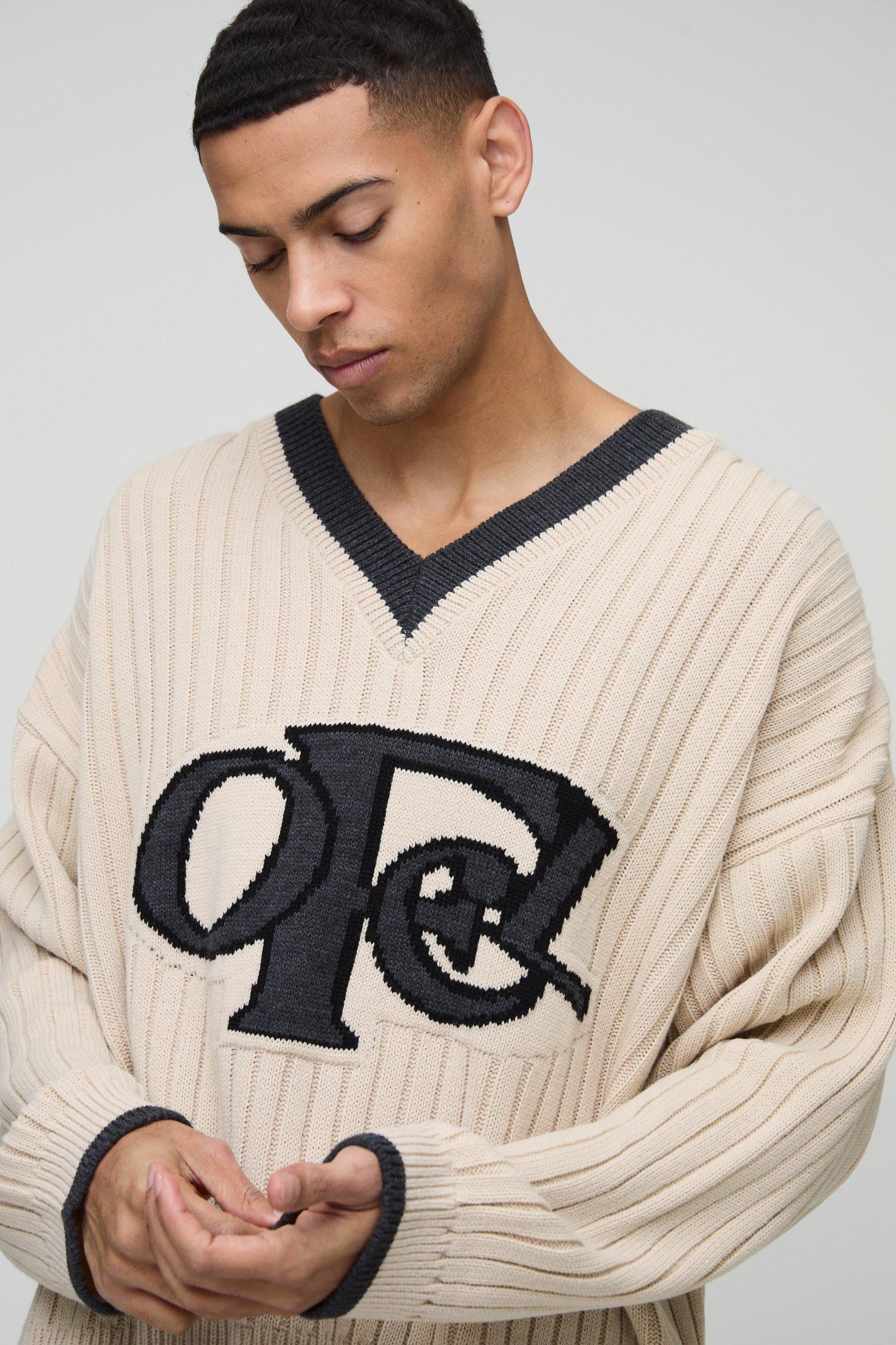 Boxy Ofcl V Neck Knitted Sweater | boohooMAN USA