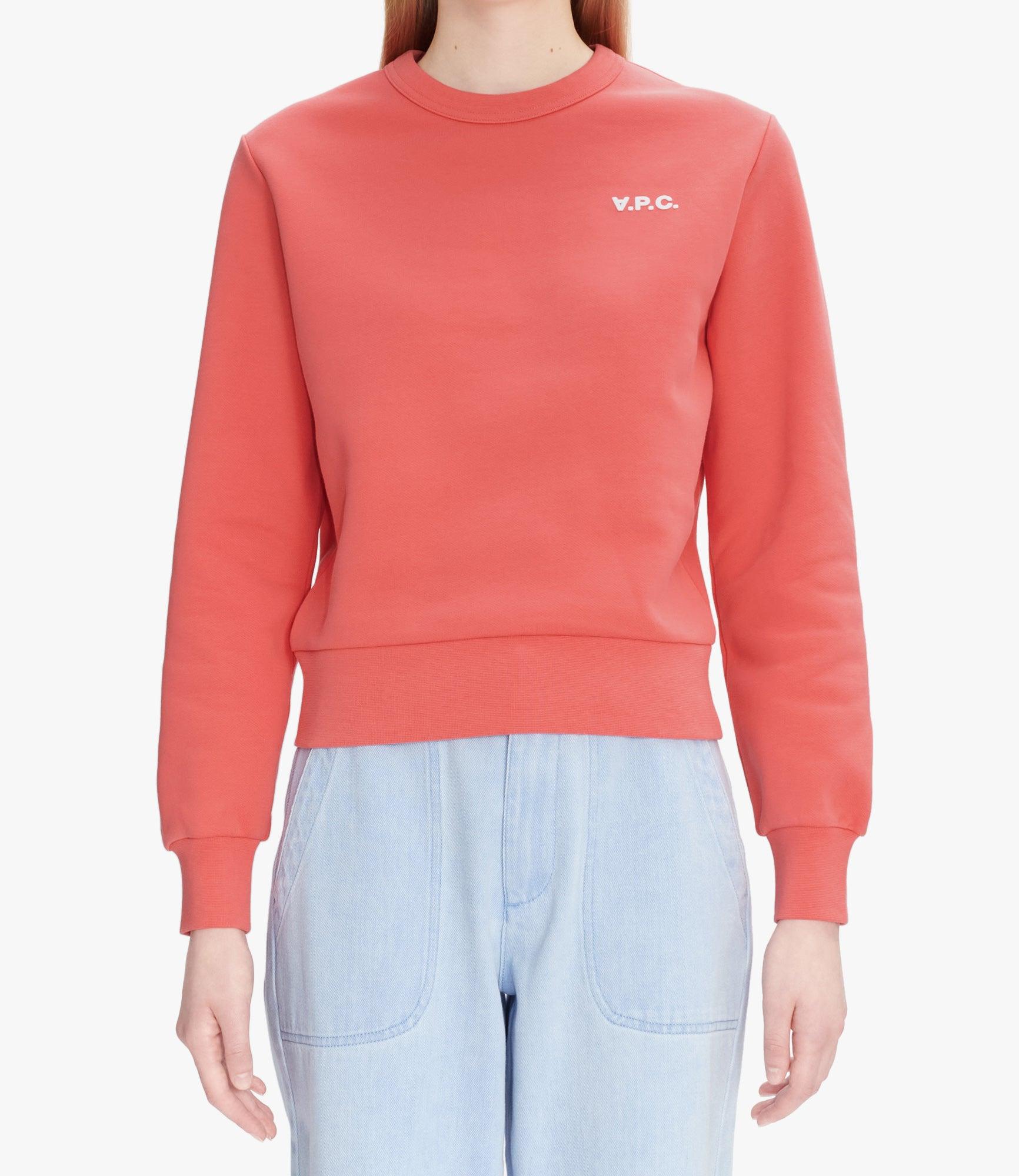 A.P.C. Women's sweatshirt.- Wide boxy fit. Size down 1 if between sizes or regular fit is desired.- Cropped cut with a loose fit. - Crew neck. - White velvety flocked V.P.C. logo over the heart. - 100% organic cotton.